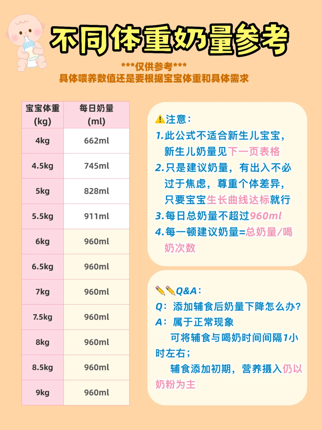 ⚠️当然,这是基于统计学样本研究出的计算方式,只是“建议值”,参考即可,稍微有出入没关系,尊重宝宝的个体差异