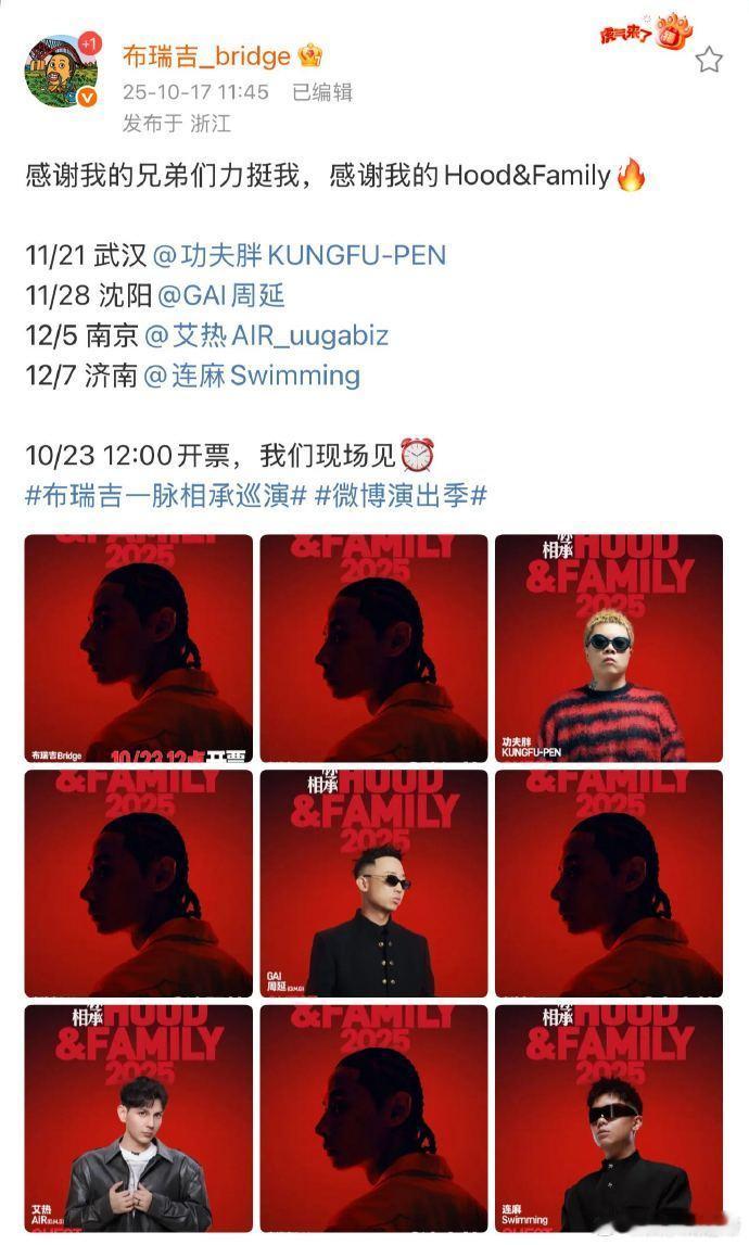 布瑞吉一脉相承巡演好多人啊 布瑞吉巡演热度拉满!首轮现场人气高涨,新官宣前四站嘉宾阵容强,GAI、艾热、连麻、功夫胖在列,神秘嘉宾身份待揭晓,啥时候公布? ​​​