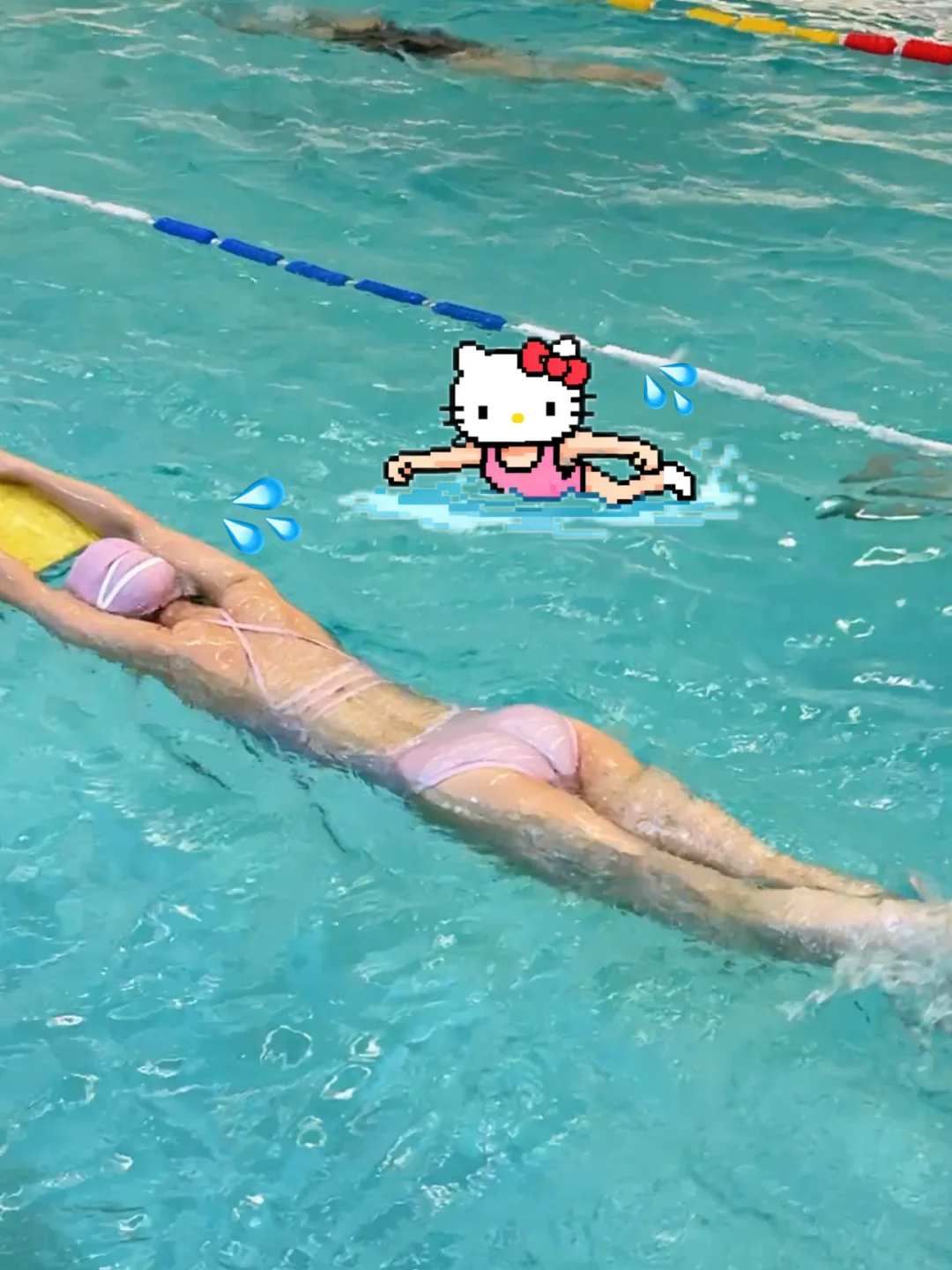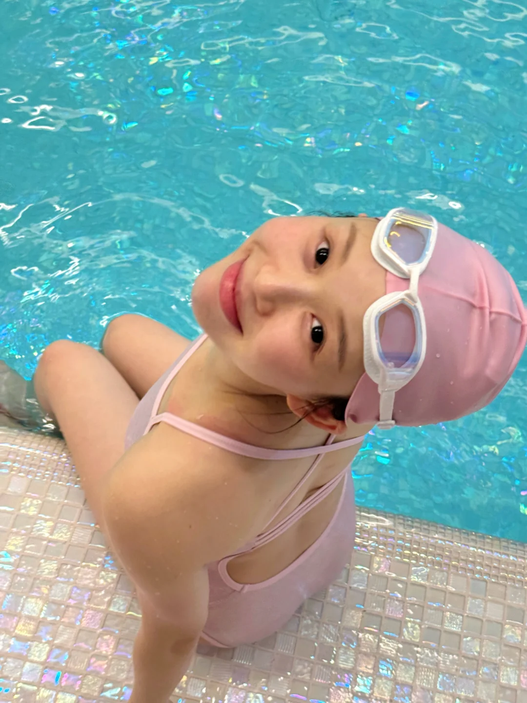穿了新泳衣👙 被教练(女)夸夸啦! 每次戴泳帽就很像小学生了 我被束缚住了! 还拍了抽象照哈哈 像个粉色的苍蝇?