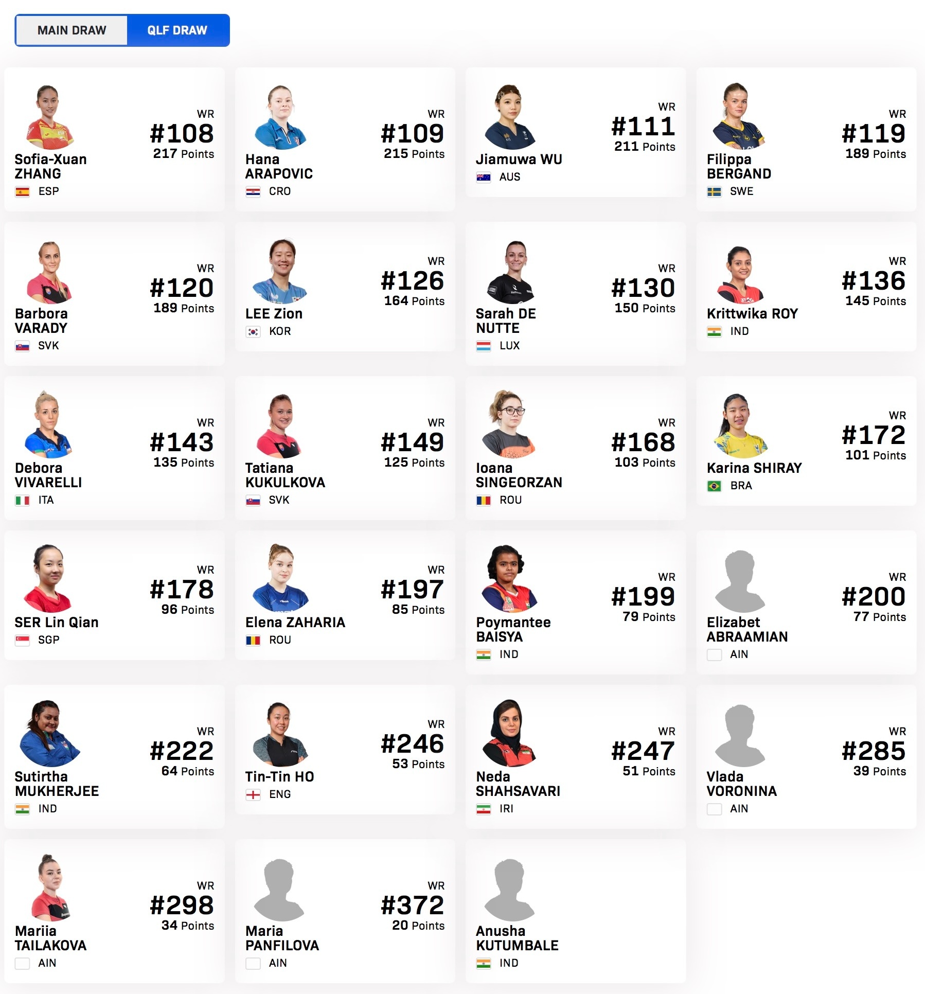 S穆克吉🇮🇳,何天天🏴,沙萨瓦里🇮🇷,沃罗宁娜AIN,