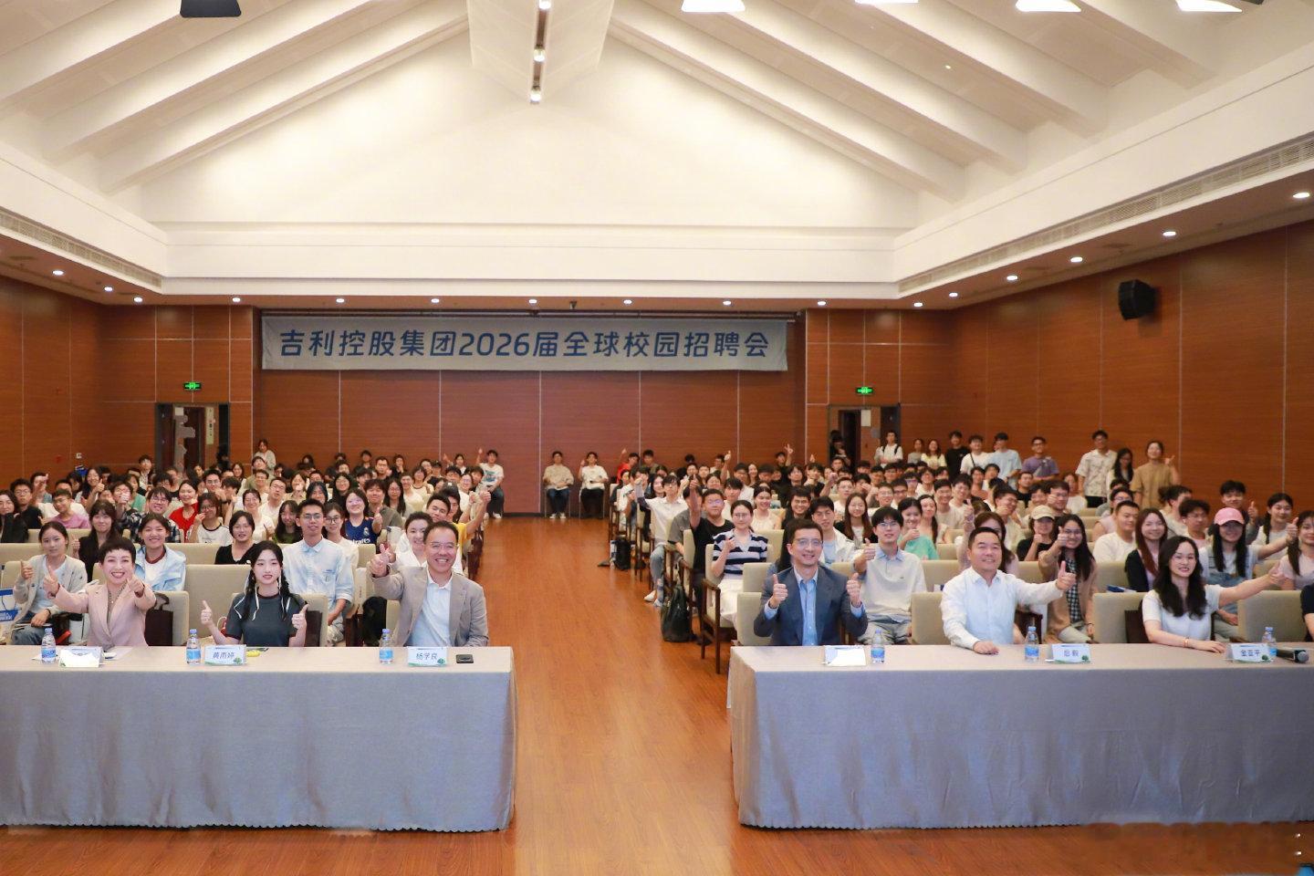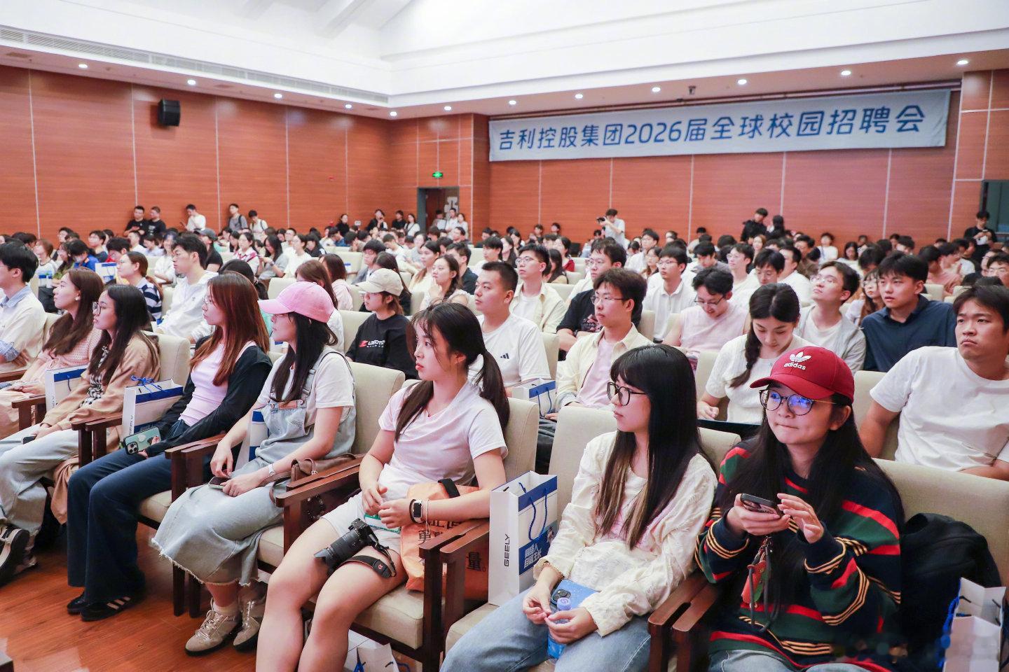 吉利浙大校招一座难求 吉利控股集团的高管团队现身浙江大学,副总裁杨学良、沃尔沃运营官朱凌、吉利校招大使黄雨婷,2026届全球校招站台,现场座无虚席,浙大学子的热情高涨,这场高管亲自出马的“抢人”戏码,透露了吉利人才战略的高度重视!
