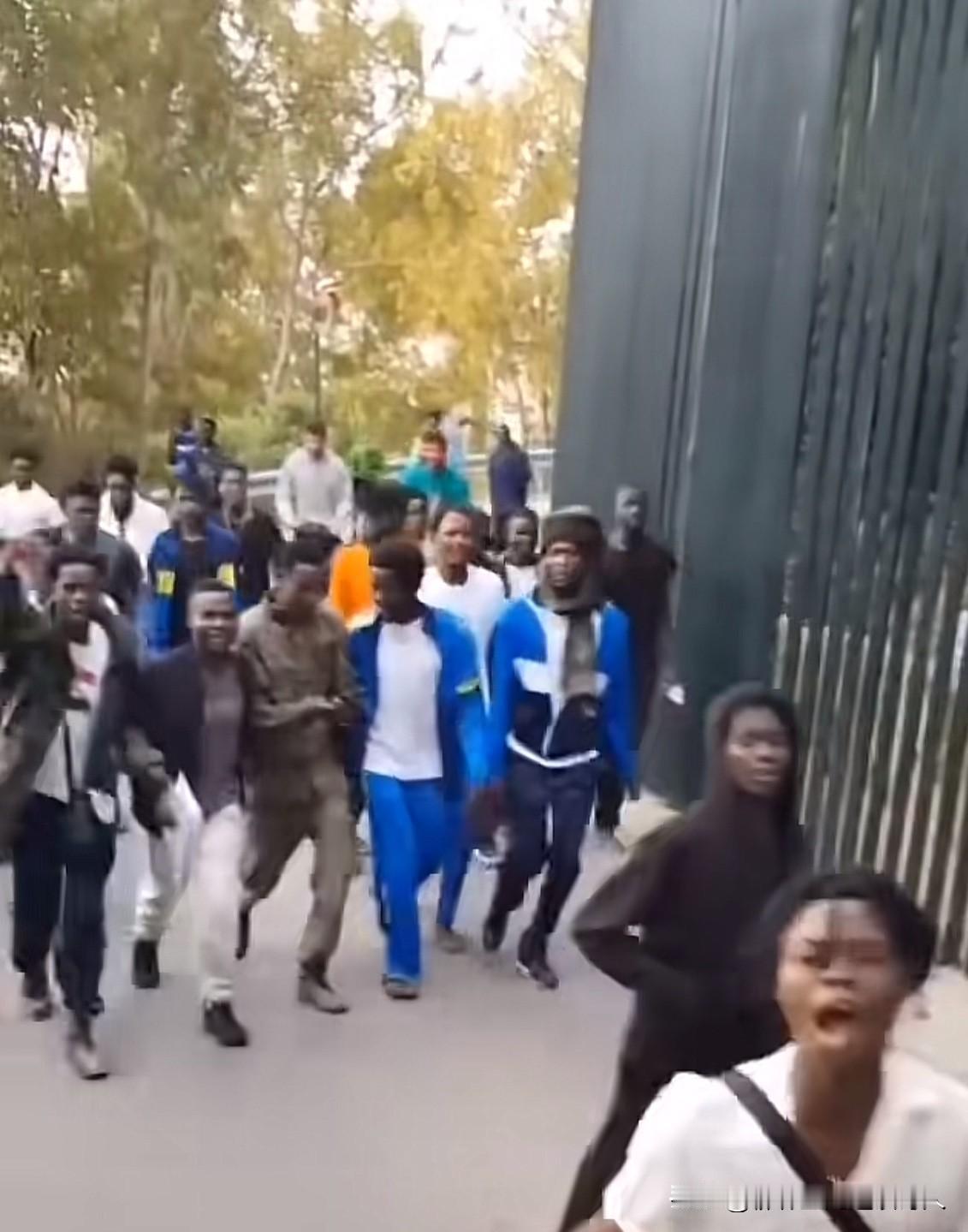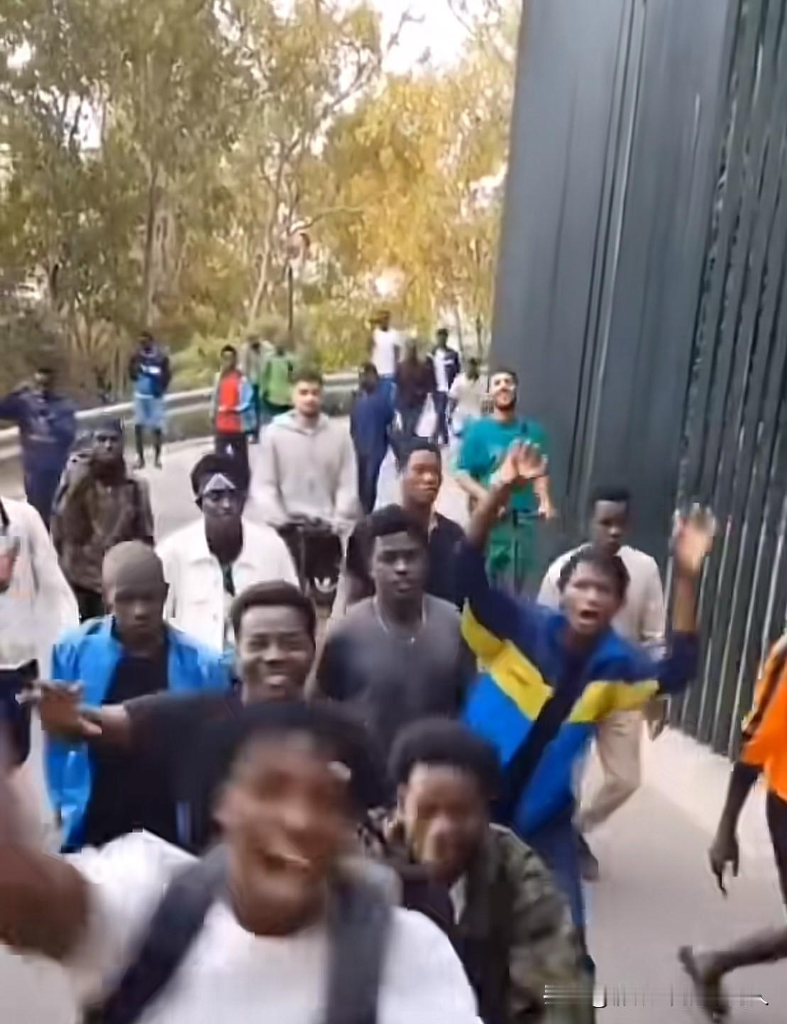 大批难民(小黑)登陆西班牙,兴奋到手舞足蹈,开心的就像过年一样。