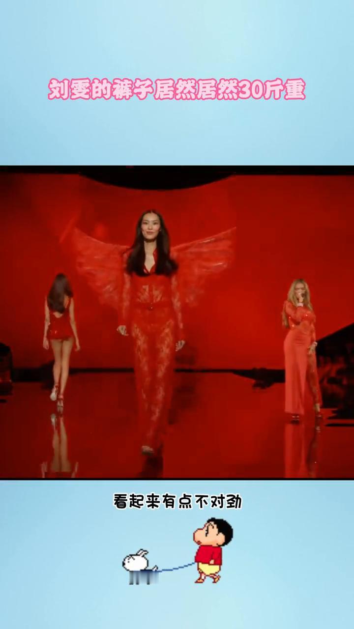 刘雯的裤子居然居然30斤重。 难怪刘雯这次维密走秀看起来有点不对劲,这位超模藏着