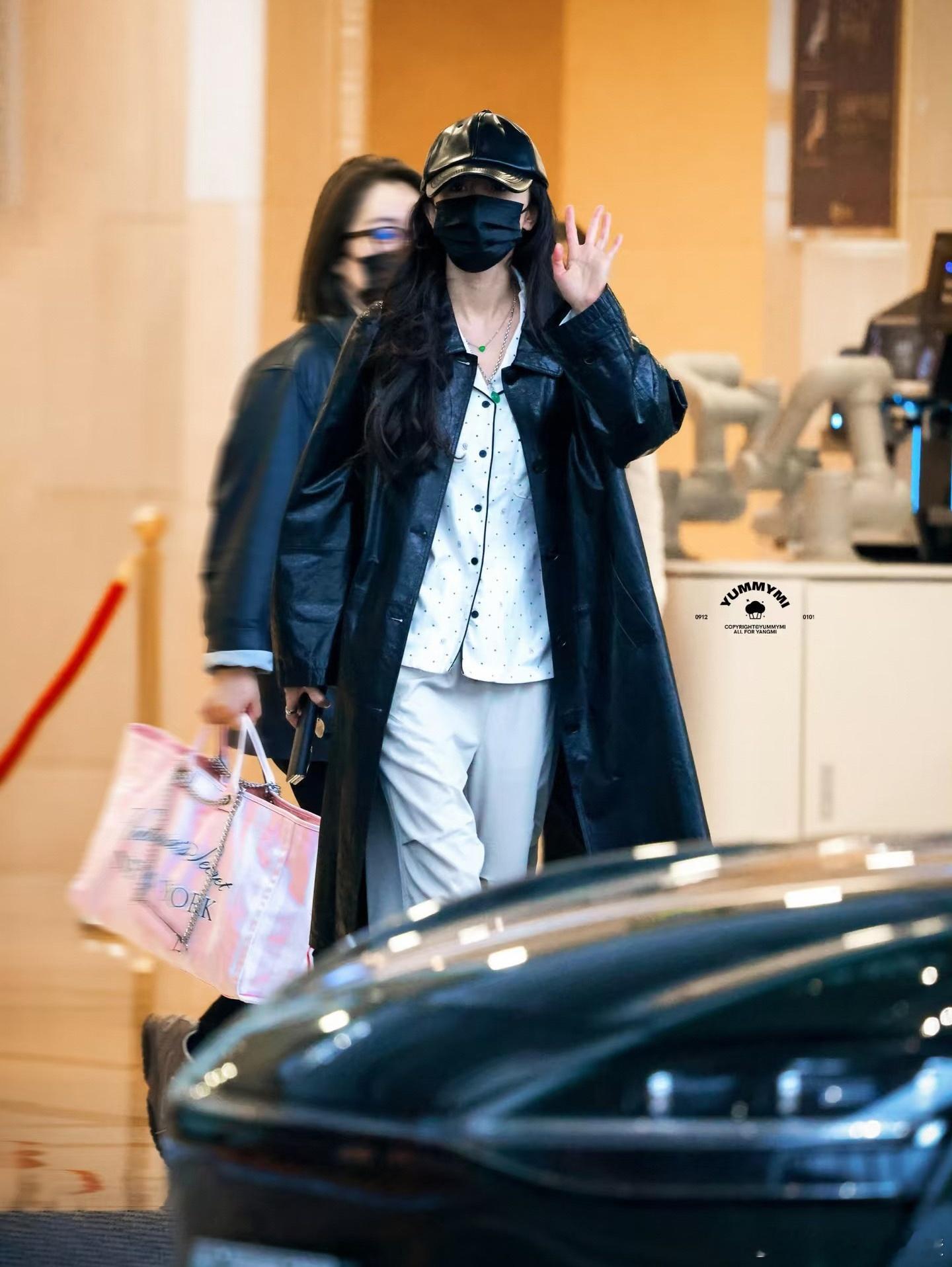 身穿黑色风衣和一身睡衣,有眼尖的网友一眼看出杨幂接机的车辆是一台绿色的享界S9T旅行车。