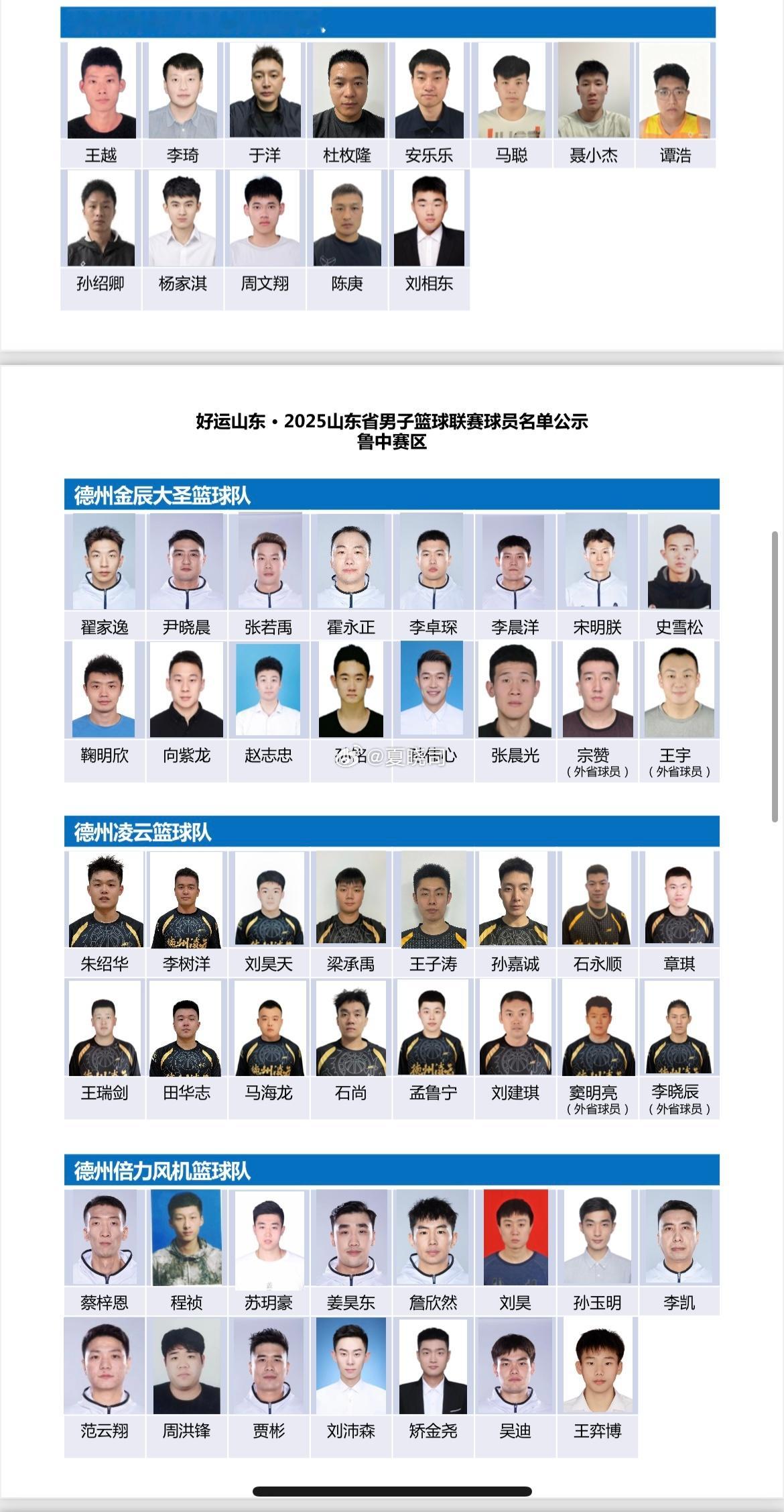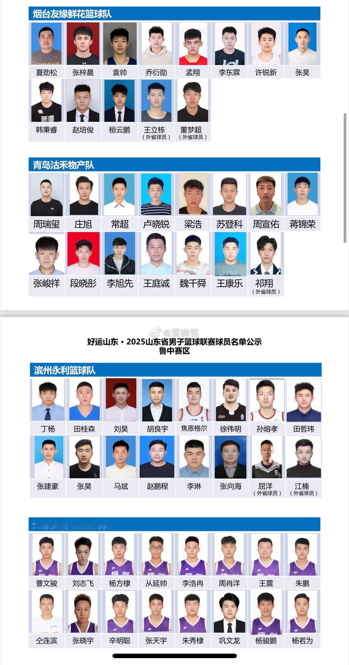 2025赛季山东省篮球联赛吸引了打过CBA的王洪、宗赞、侯沛佐、宋康明、田桂森、