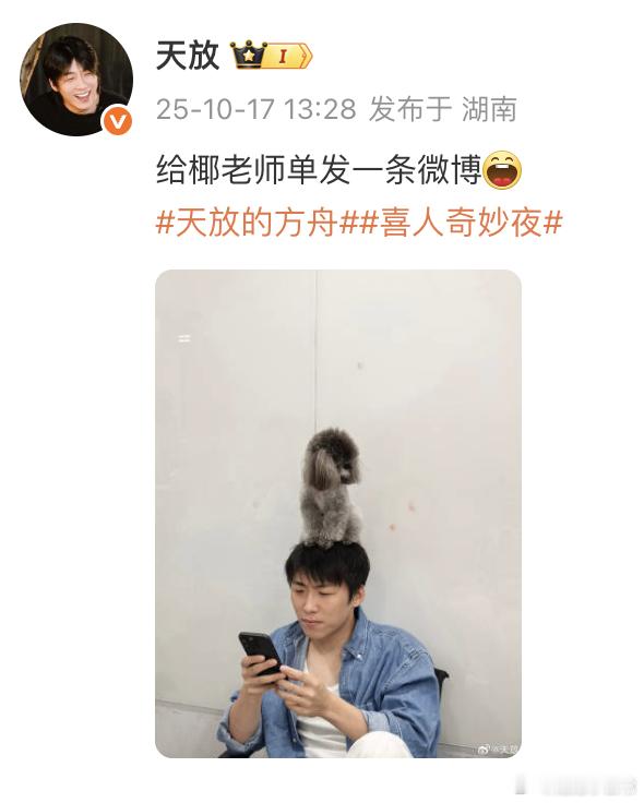 王天放 脑袋大到可以停一只狗喜人奇妙夜 王天放真的是“硬汉+暖男”的完美结合!脑袋够大,能停一只狗,心也大,能容下一整片星空,尤其是在《天放的方舟》中的那份柔情,太治愈了!