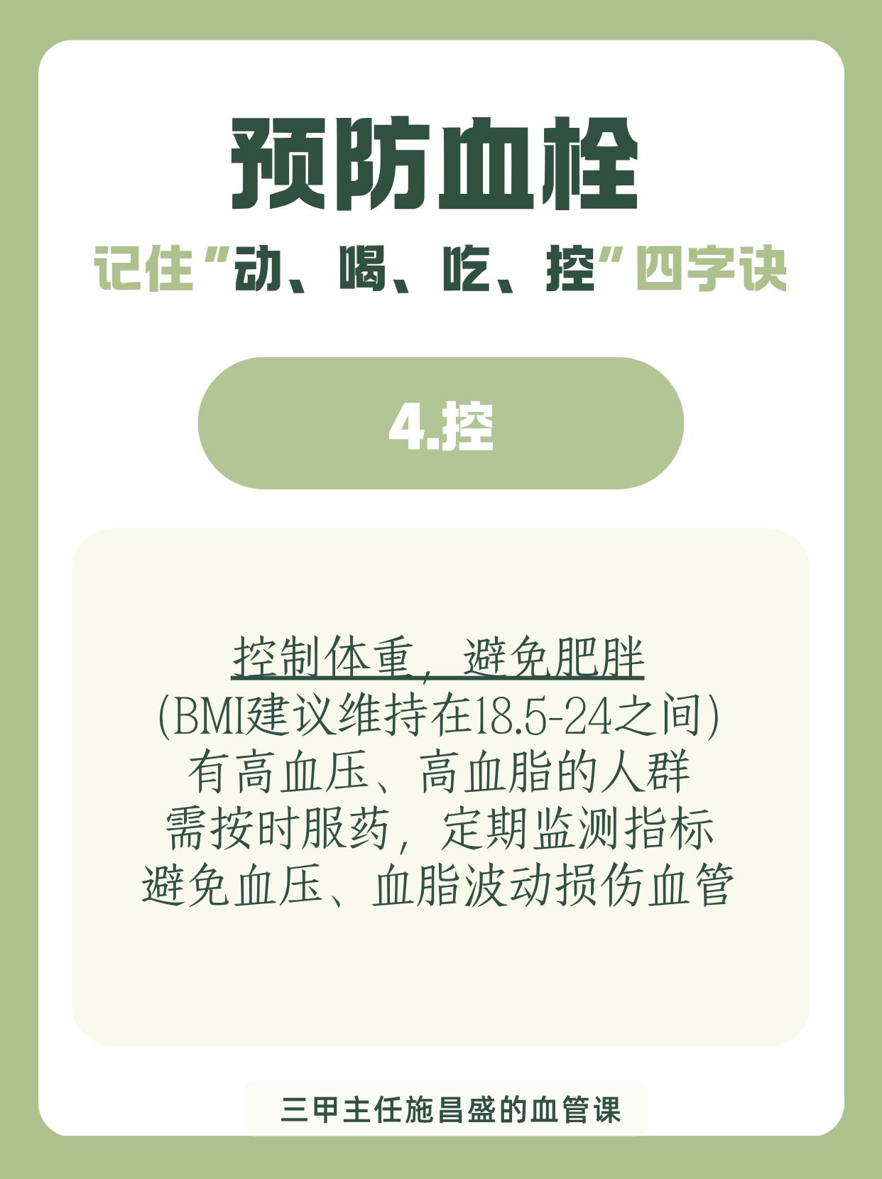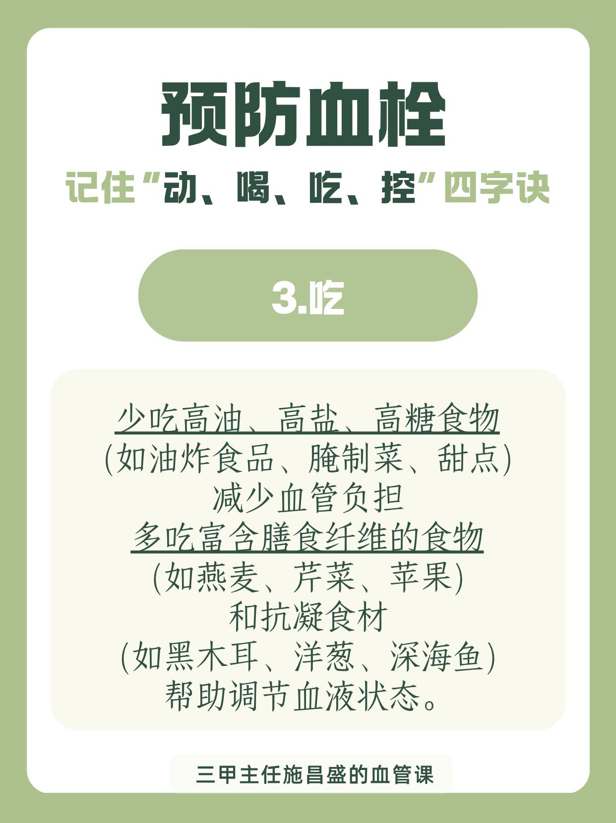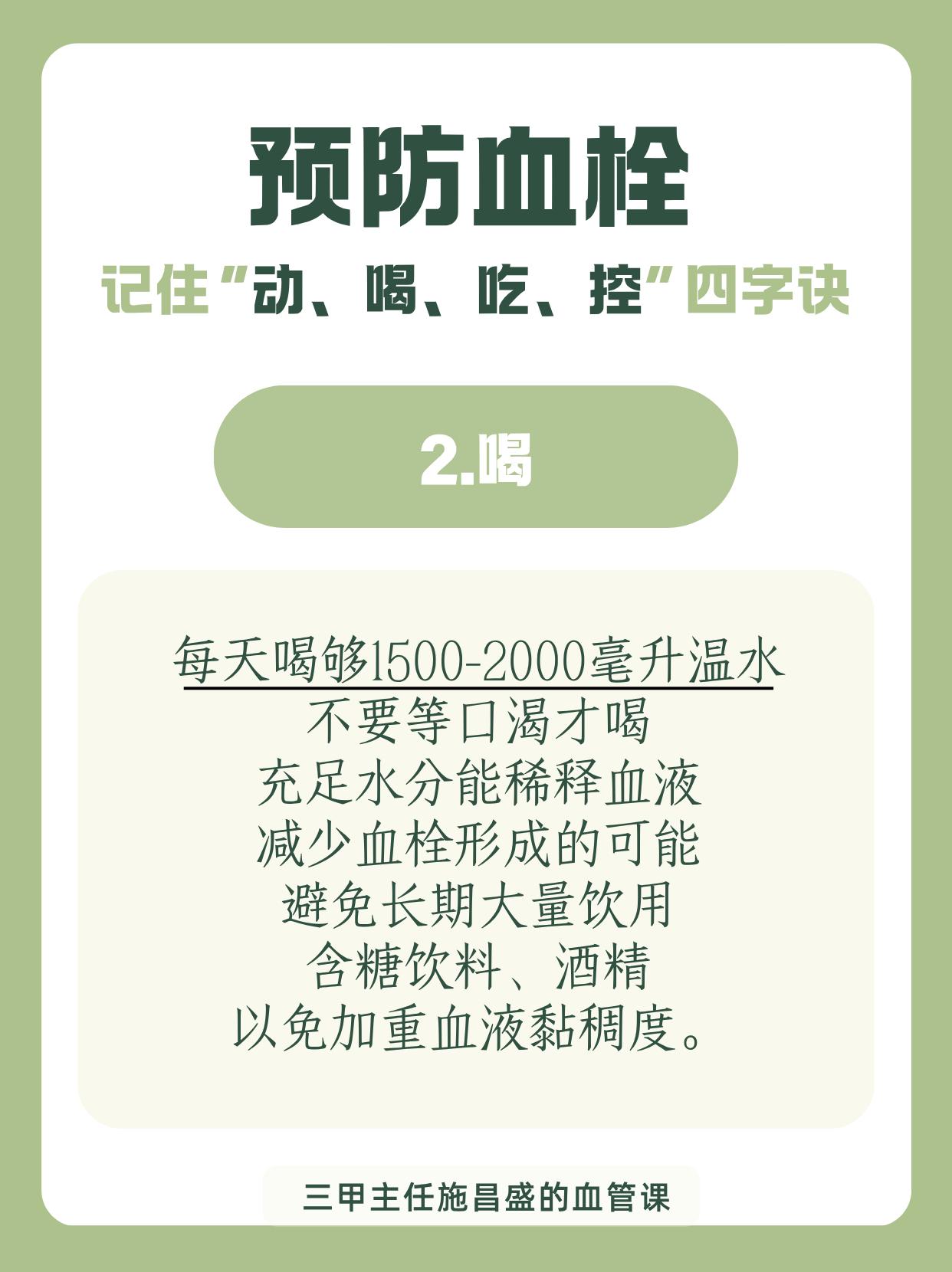 预防血栓:记住“动、喝、吃、控”四字诀。预防血栓别复杂!日常做好这4点...