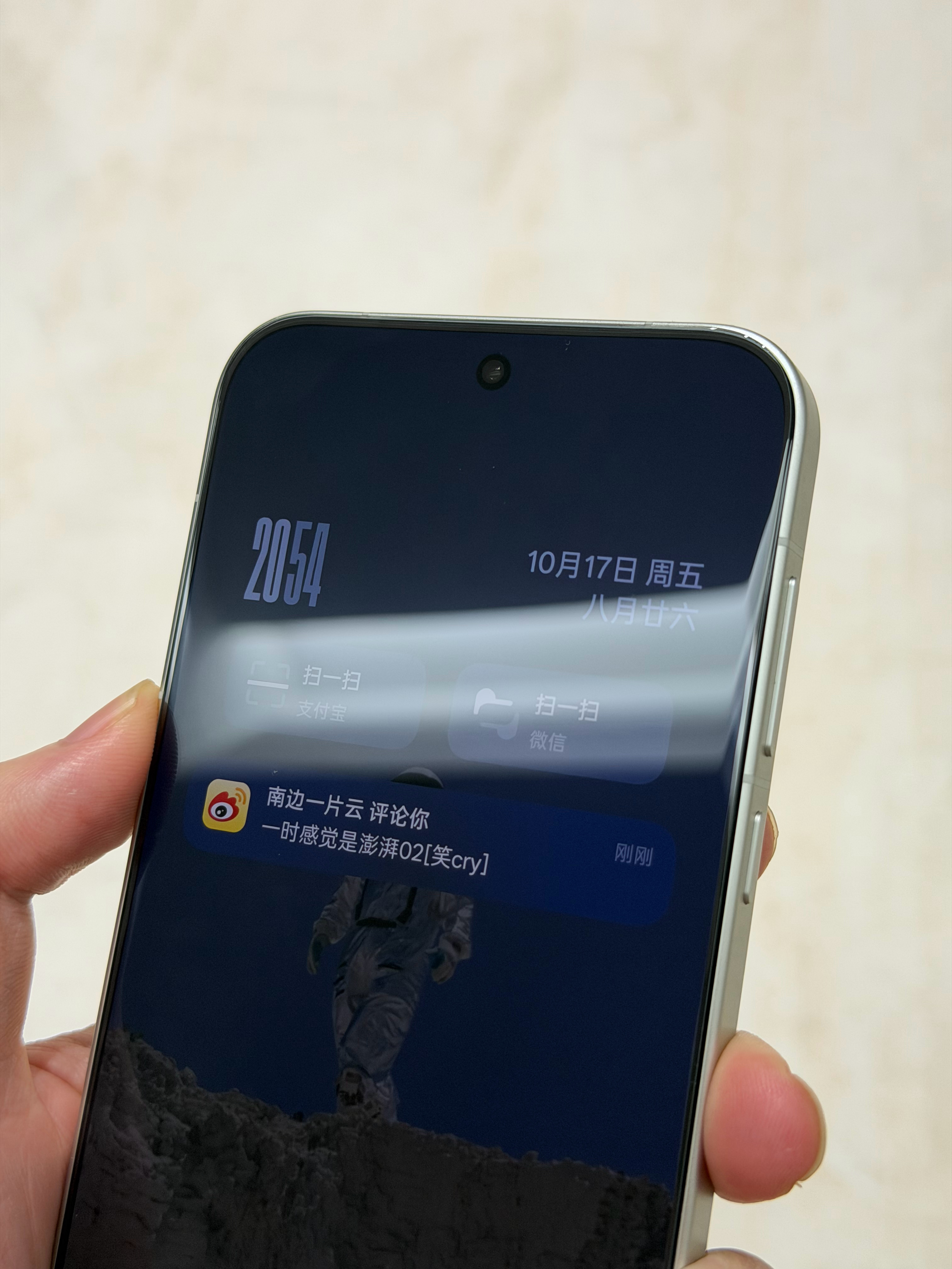 笑死 因为没有 find x9pro 的钢化膜 我就又拿了一张 17pm 的贴了一下 有一点点大 但居然贴出了曲面屏的感觉[允悲][允悲][允悲][笑cry][笑cry][笑cry][笑cry]