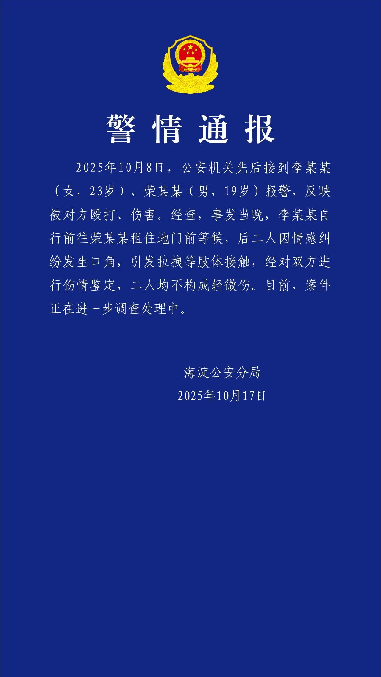 警方通报荣梓杉李禹熹纠纷荣梓杉和李禹熹恋爱纠纷事件喜提警情通报![点赞]