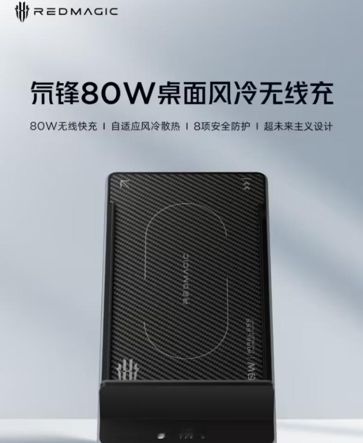 红魔氘锋80W桌面风冷无线充电座发布,采用斜立式造型设计,支持80W无线