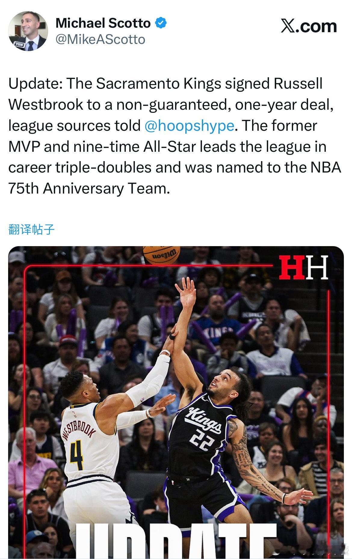 Scotto:威斯布鲁克与国王签署的是一份为期一年的非保障合同! ​​​