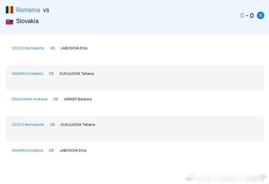 2025年欧洲团体锦标赛女团¼决赛对阵表:罗马尼亚🇷🇴VS斯洛伐克🇸🇰斯