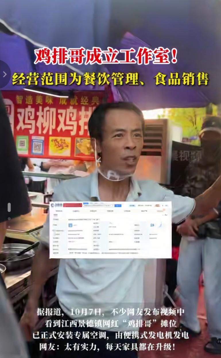 炸裂摆摊界天花板!鸡排哥成立工作室搞“餐饮帝国”,网友:以后得叫李总了!如何看待“鸡排哥”成立工作室 从鸡排哥成立工作室这件事,可以从多个角度来分析其背后的想法: - 商业发展层面 - 品牌化运营:成立工作室,将个人摊位向更规范的商业主体转变,有助于进行品牌化建设。通过“鸡排哥”的网红IP,结合餐饮管理和食品销售的经营范围,未来可能打造专属的鸡排品牌,拓展产品线,从单一的摊位销售向品牌连锁、食品零售等方向发展。 - 业务拓展:工作室的经营范围涵盖餐饮管理和食品销售,这意味着鸡排哥不满足于仅在摊位上制作销售鸡排,可能会尝试开展餐饮管理咨询业务,或者开发预包装的鸡排食品进行线上线下的销售,进一步扩大业务版图。 - 个人发展层面 - 身份升级与职业规划:从一个普通的摆摊者,转变为工作室的经营者,这是个人身份和职业的一次重要升级。鸡排哥通过这种方式,为自己的职业发展规划了更长远的道路,从短期的摆摊盈利,转向长期的商业实体运营,提升个人的社会认可度和职业价值。 - 应对流量与市场变化:作为网红“鸡排哥”,其走红带来了大量的流量和关注。成立工作室是一种应对流量红利的方式,将流量转化为实际的商业价值,同时也能更规范地应对市场变化和竞争,比如在供应链管理、产品质量把控、客户服务等方面,通过工作室的运营模式进行优化,以保持自身在市场中的竞争力。 - 行业影响层面 - 摆摊经济的升级示范:鸡排哥的做法为摆摊经济的发展提供了一种新的思路,即通过网红效应结合规范化的商业运营,实现从小摊位到大工作室的升级。这可能会启发更多的摆摊者思考如何借助自身的特色和流量,进行品牌化、规范化的发展,推动摆摊经济向更高质量的方向发展。