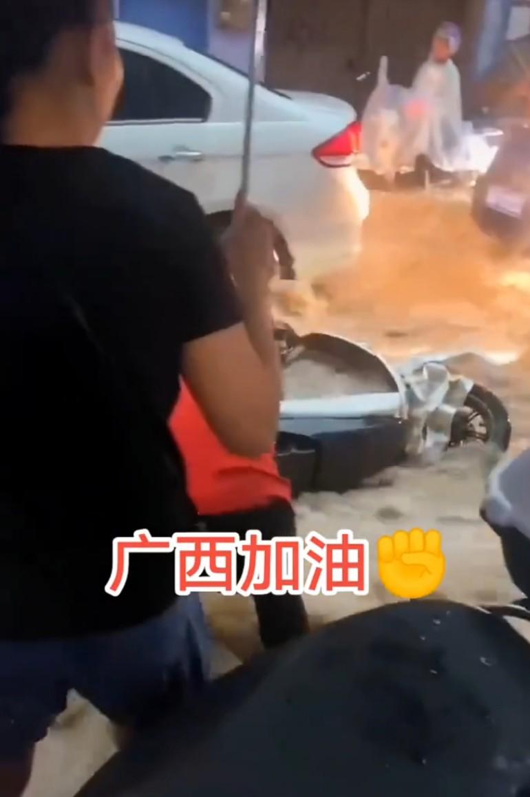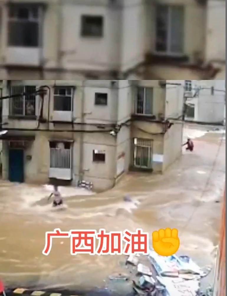 广西,我们与你并肩作战 暴雨如注,洪水肆虐,壮乡大地正经历着严峻的考验。街道