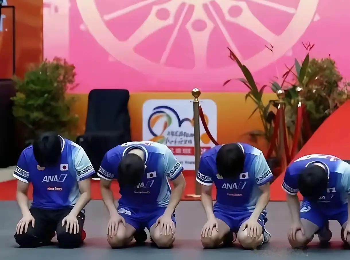日本乒乓球男团这是举行什么仪式?亚锦赛男团半决赛,日本队惨遭中国队逆转,比赛结束后,只见他们一字排开,低着头,长跪不起,这画面看着是不是感觉很熟悉,很多抗战题材电影电视剧里都有这桥段,鬼子打了败仗或者一个重大计划被摧毁,鬼子军官为了向他们的天皇谢罪,跪在地上,用一条白毛巾擦拭雪亮的军刀,握紧向内对准自己腹部致命位置,然后用力刺进,就算为天皇尽忠了。 可现在都什么时代了,难道日本男队也被武士道精神洗脑了?不成功便成仁,就输掉了一场比赛,不至于啊!另外呢,如果真想杀身成仁,未免有点太敷衍了,显得诚意不足,因为缺少一条白毛巾和那件锋利的工具。张本智和看来是入乡随俗了,赢了梁靖崑疯狂挑衅那副嘴脸,令人反感憎恶,全队输了,作为一号主力,张本智和理应负主要责任,既然想做纯粹的日本人,不能光有表面文章,必须来点正格的,没有白毛巾,运动服擦吧擦吧也行,没有军刀,手里有球拍,对着自己的脸使劲扇几个嘴巴,也算履行了那套程序。不然搞那种不伦不类的表演没有任何意义,反而让人耻笑。