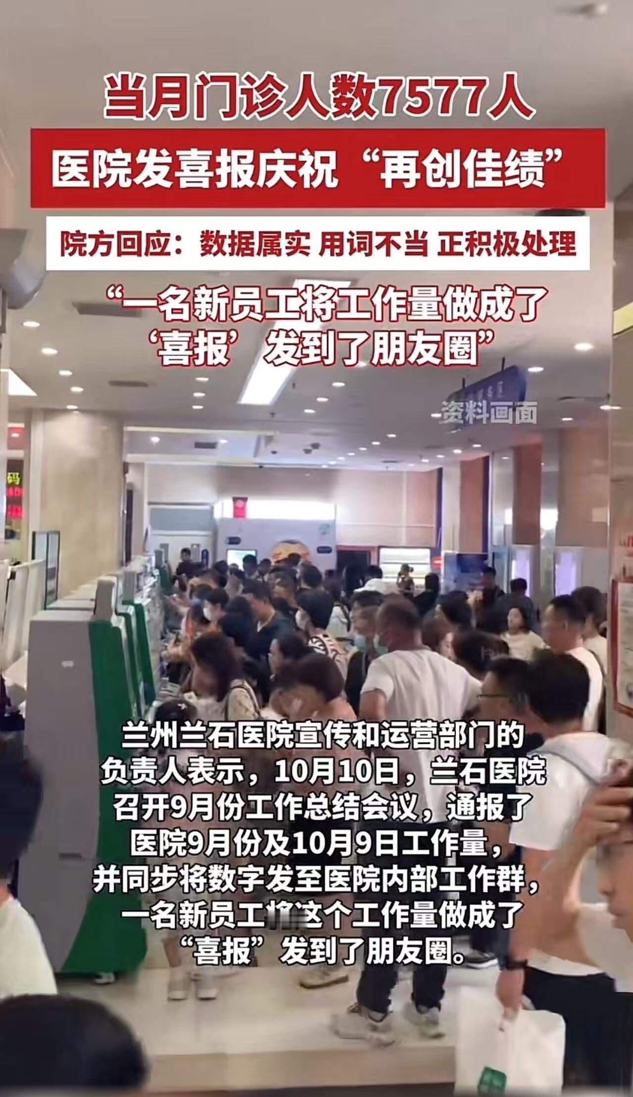 “极度引人不适!”甘肃兰州,当月门诊人数7577人,医院发喜报庆祝“再创佳绩”!
