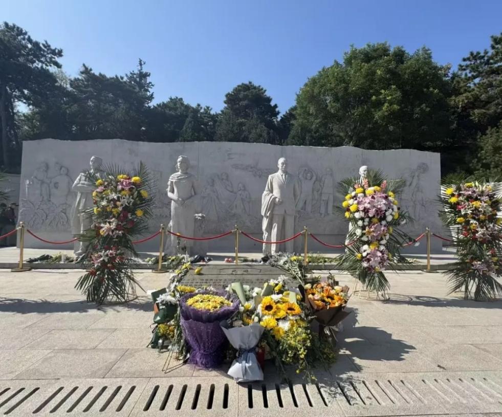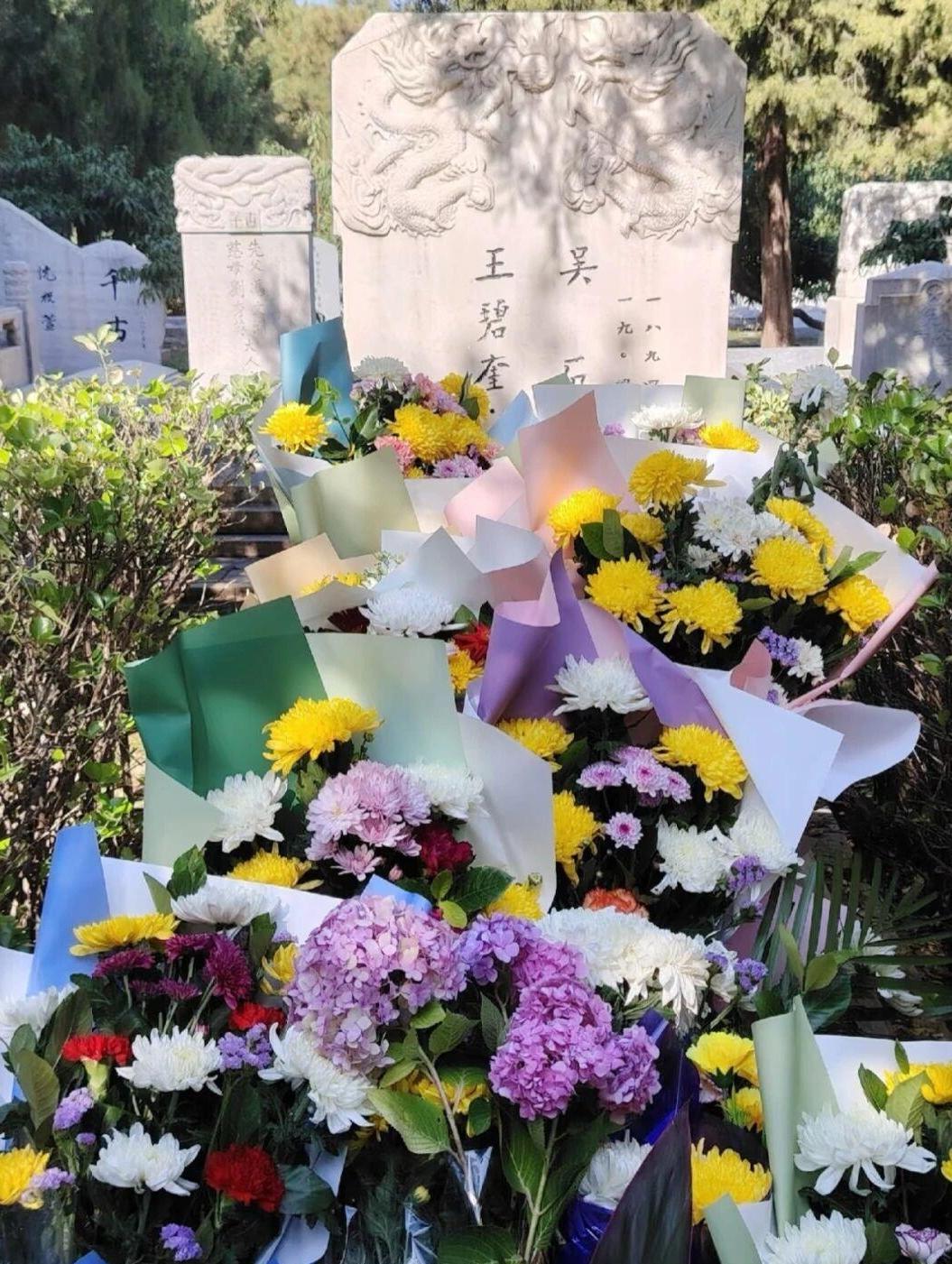 快报!随着《沉默的荣耀》热播,北京福田公墓吴石将军的墓碑前摆满了高1米长5米的鲜