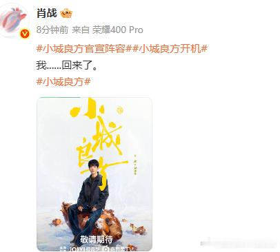 肖战刘铮亮我回来了肖战小城良方官宣文案小城良方看肖战的刘铮亮,在资源匮乏的基层医院,用智慧与温情开出 “小城良方”。 ​​​