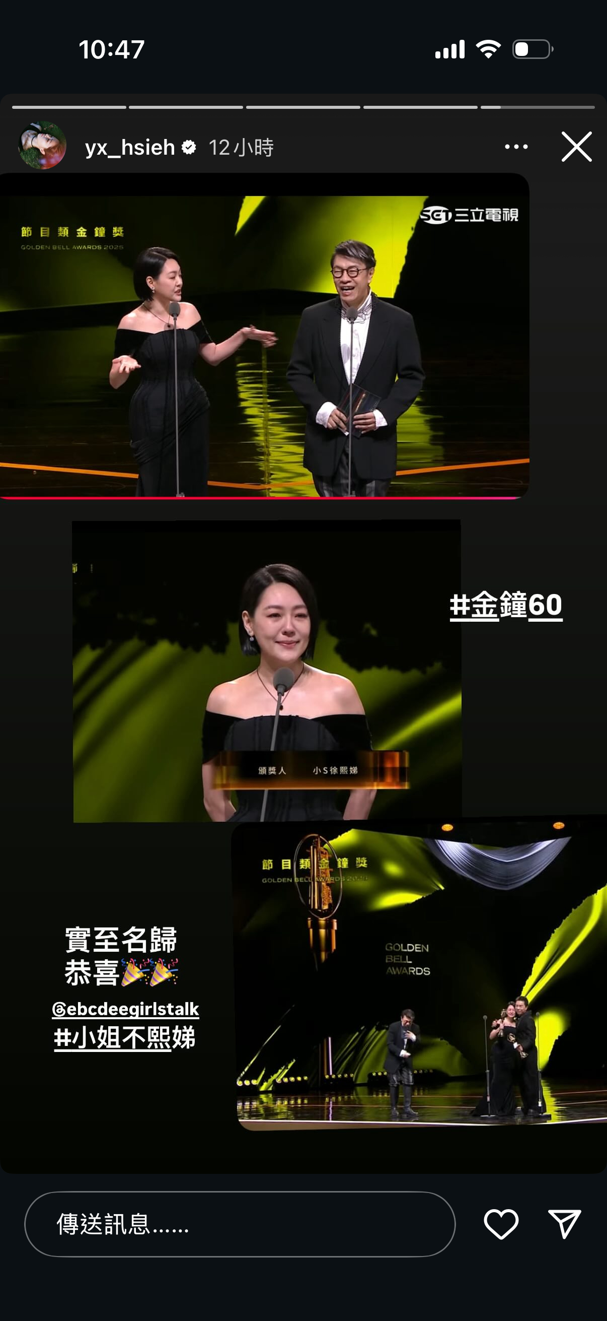 金钟奖金钟奖缅怀大S徐熙媛😭 哭得我😭「谢幕成为永远的灿烂 谢谢你徐熙媛。」