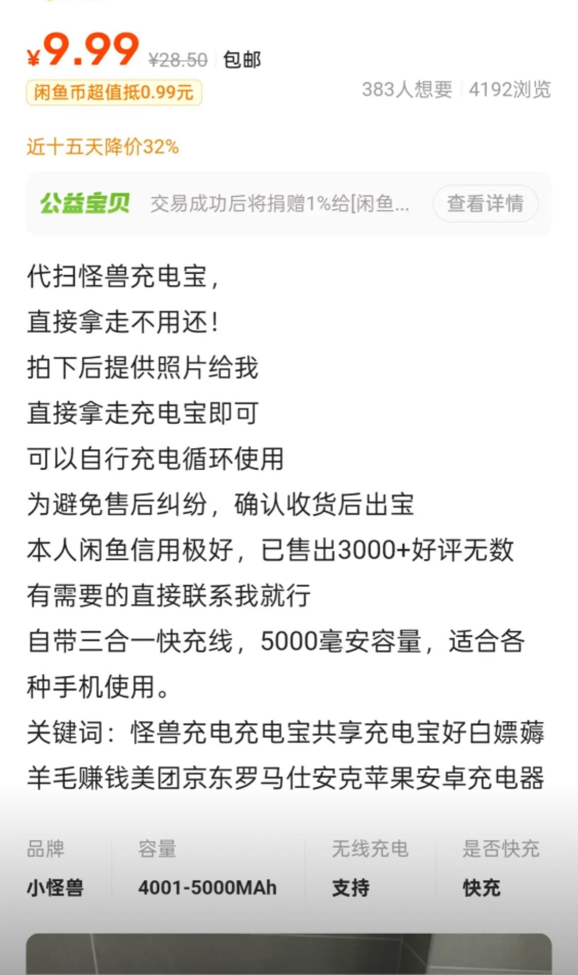 我今天在闲🐟上看到一个9.9元卖共享充电宝的帖子,买共享充电宝不是99元吗?我
