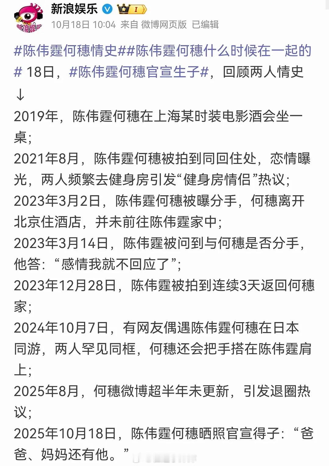 陈伟霆何穗官宣生子陈伟霆何穗什么时候在一起的