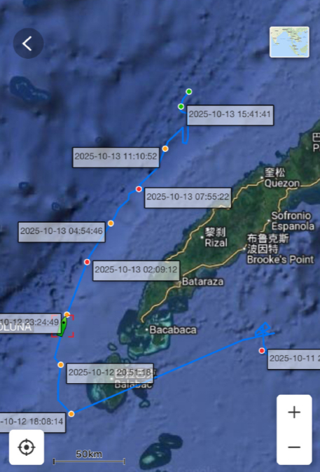 更值得注意的是军方力量的介入。AIS信号追踪数据显示,菲律宾海军当天向仙宾礁附近海域派出了至少两艘主力舰艇:BRP Antonio Luna号(舷号FF-151)和BRP Ramon Alcaraz号(PS-16)。