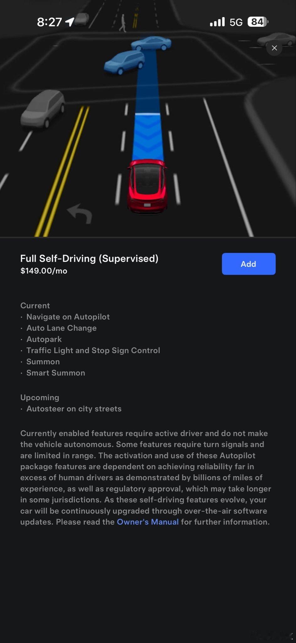 特斯拉在澳大利亚可以每月 149 澳元(96 美元)的价格订阅 Tesla FSD(Supervised)。