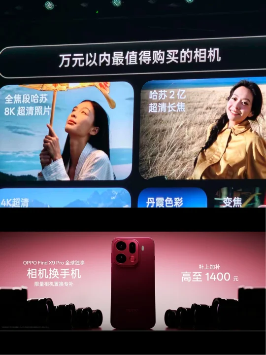 发布会我看了👀,Find X9 Pro的影像配置很强,满血LYT828主摄、2亿像素长焦(媲美相机的清晰度,多次裁切不怕糊拯救废片)、丹霞镜头(色彩自然拍人更有气血感)、哈苏套装等,还有8K哈苏照片、4K live(比iPhone的2K live清晰4倍)等。