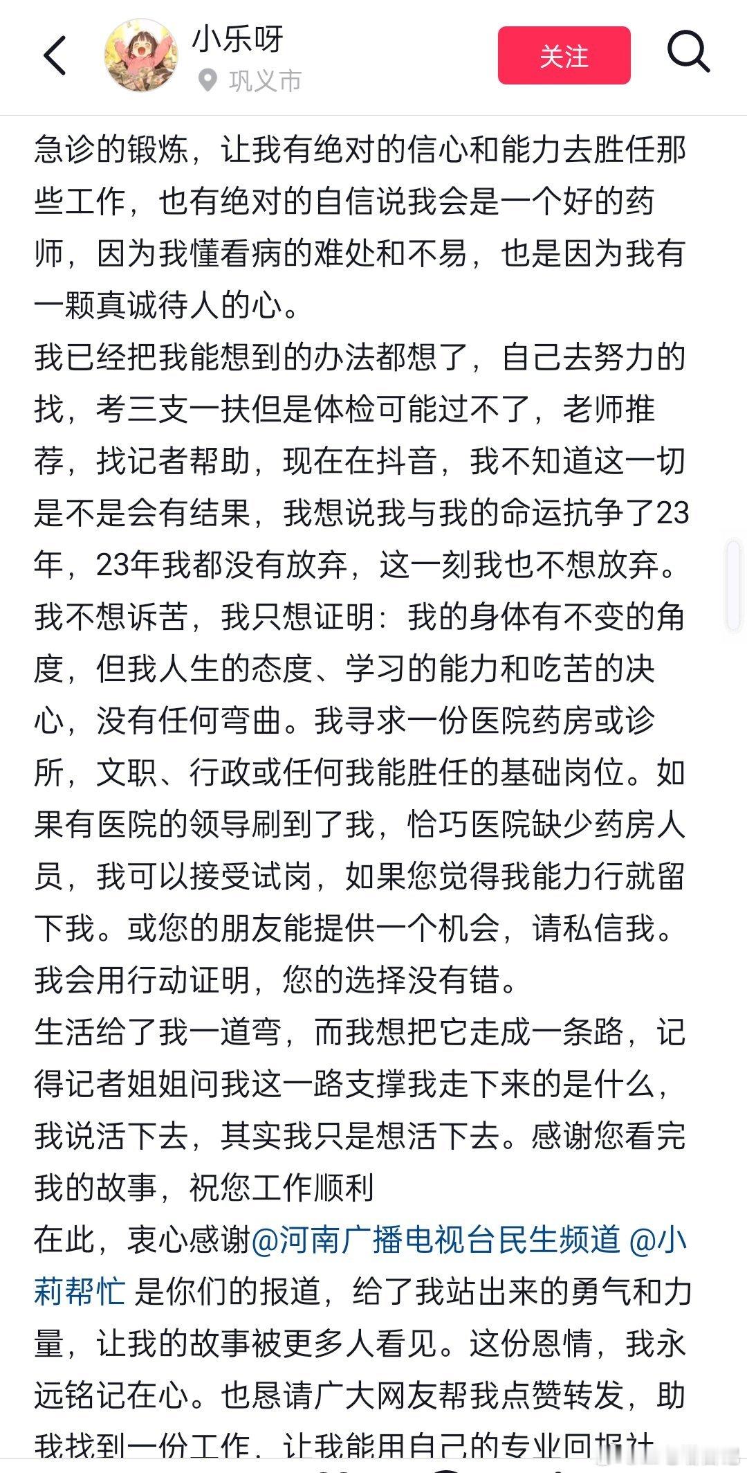 家里条件不好,母亲本身就身患疾病,能想到的办法都想了,老师推荐,找媒体,但是因为身体原因,现在依旧没有解决,希望郑州有老乡看到帮帮她!希望不要辜负努力生活的人!