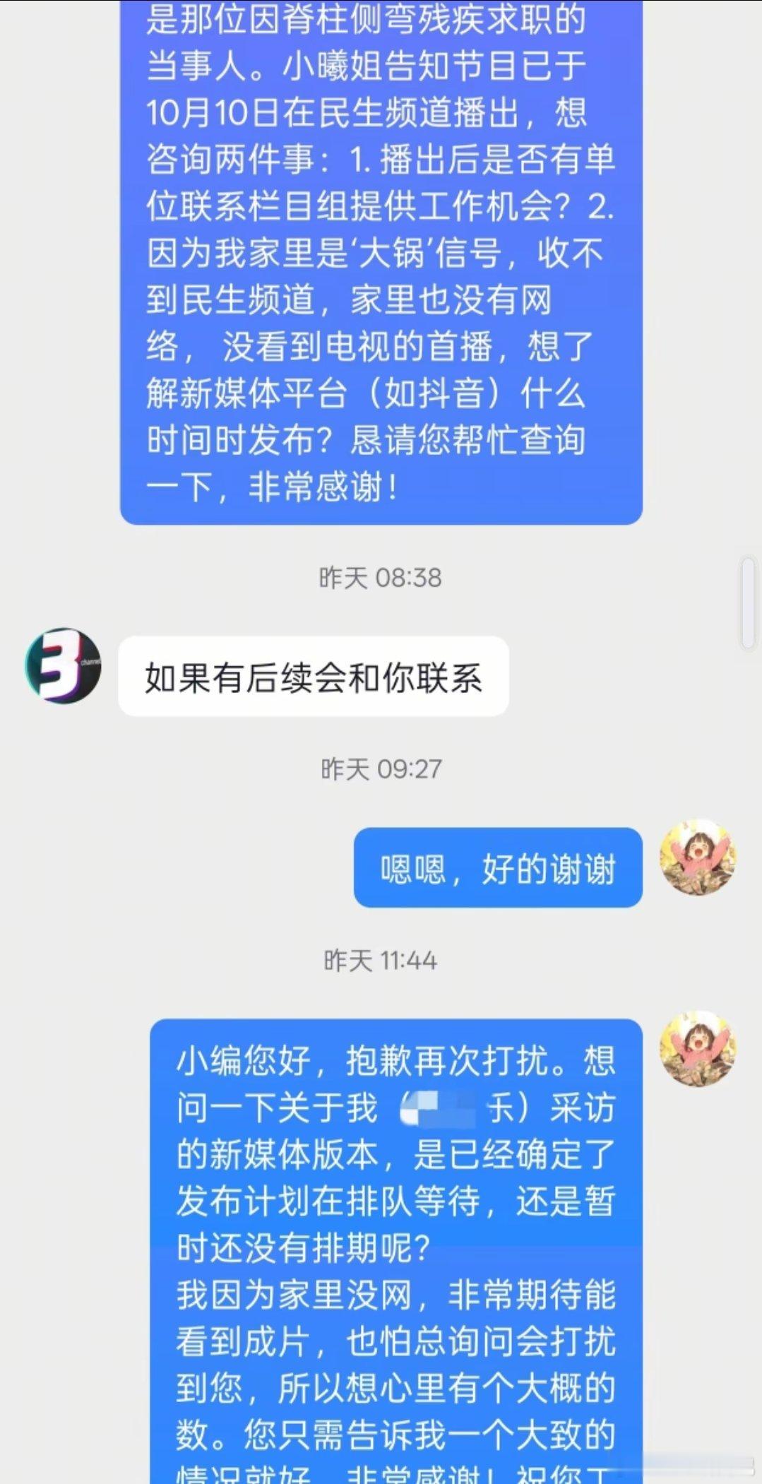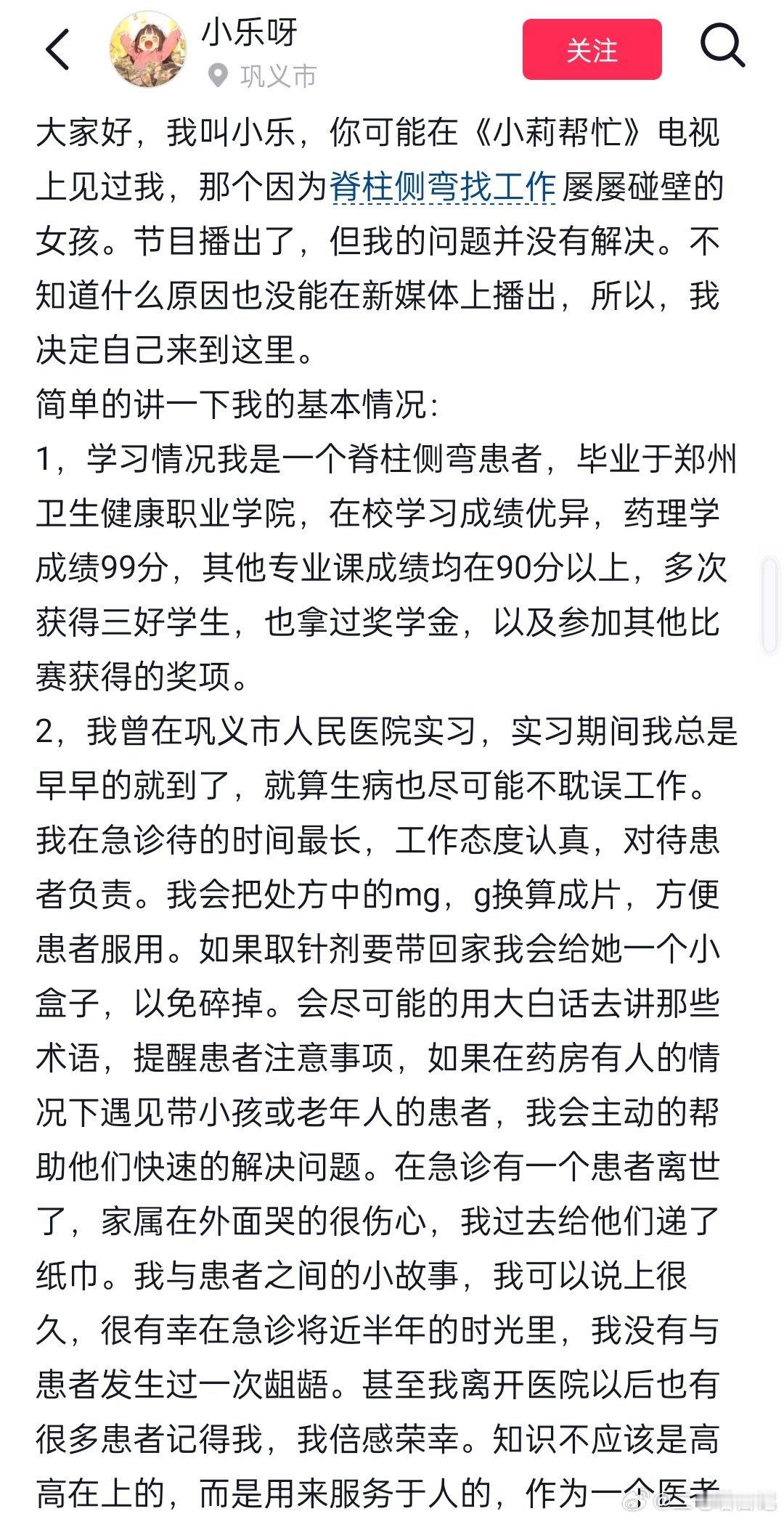 有时自己也过得不好,但是也希望拉别人一把,看到一位去年的毕业生找工作屡屡碰壁,原因就是因为脊柱侧弯。