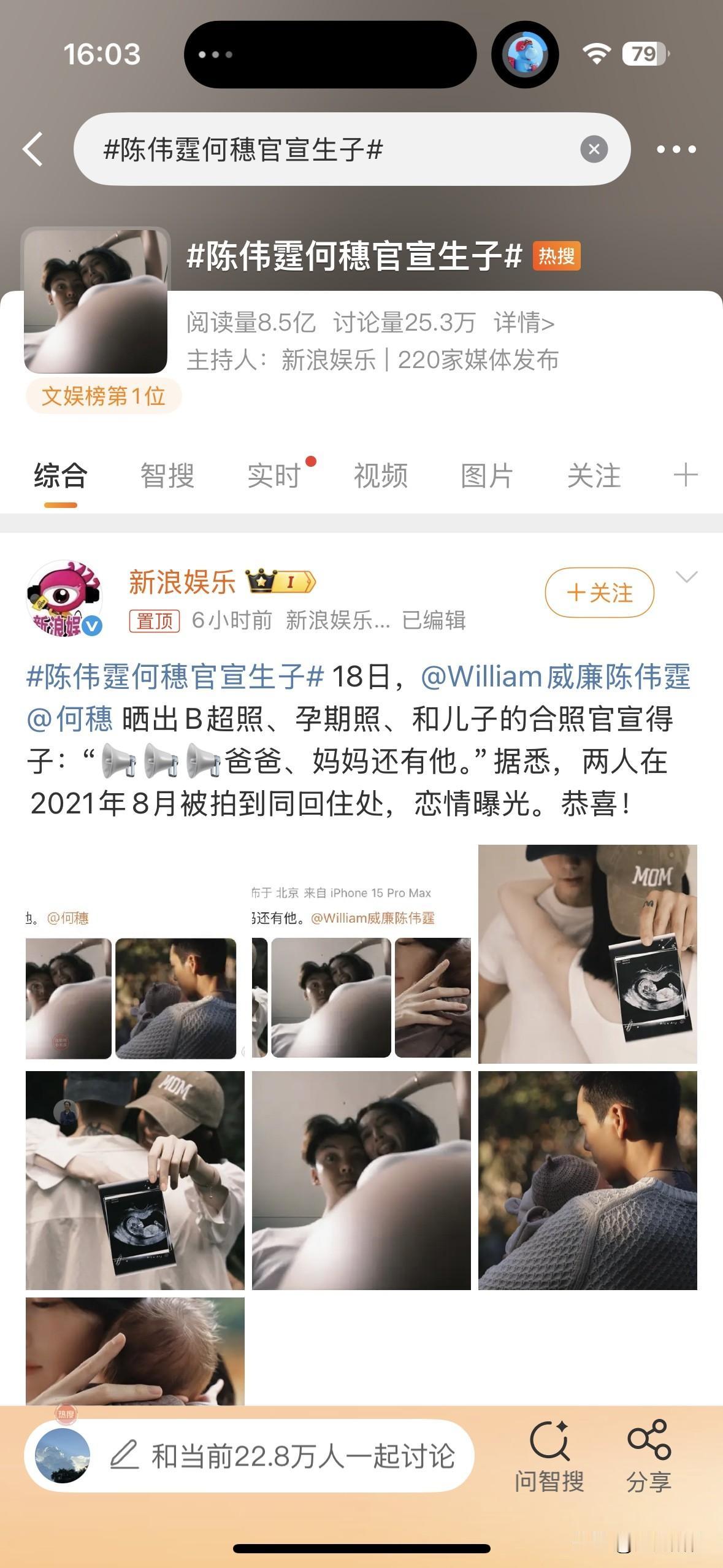 陈伟霆最近和赵露思合演电视剧《许我耀眼》翻红,不过他的私生活一直很低调。他和女演员何穗10月18日无预警在社媒上惊喜官宣“得子喜讯”,晒出一家三口的幸福合照,消息立刻冲上热搜。