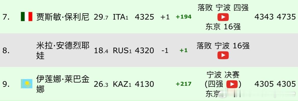 🇰🇿莱巴金娜6-3/6-2🇮🇹保利尼