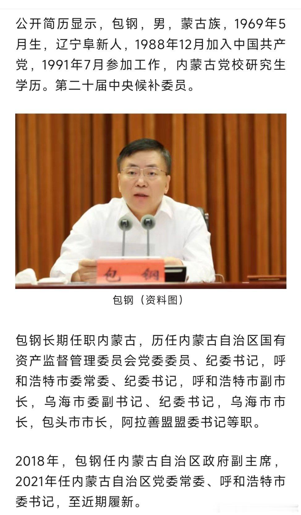 包钢当选内蒙古自治区主席王伟中当选内蒙古自治区人大常委会主任,包钢当选内蒙古自治区政府主席。热点现场