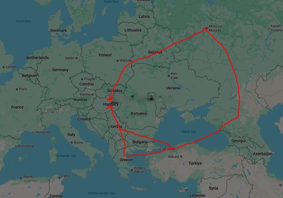 普京飞往匈牙利的最短航线需飞越波兰和斯洛伐克领空,较长的路线则是从黑海经罗马尼亚进入欧盟领空。最有可能的航线是飞越黑海、土耳其、地中海、黑山和塞尔维亚,然后从塞尔维亚领空进入匈牙利。改变后的路线估计延伸约5000公里,与直飞1500 公里的路径相比,增加了大约三个小时。