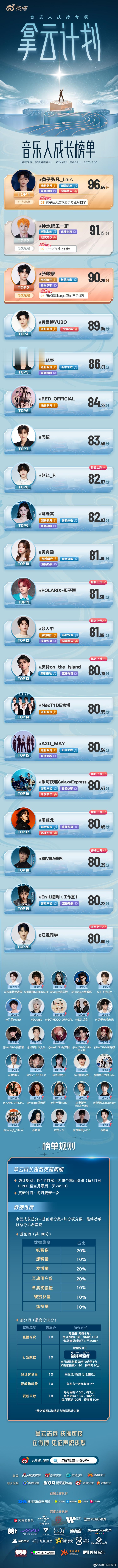 微博拿云计划「音乐新芽破土而出,舞台星光持续加码」9月微博拿云音乐人成长榜单为