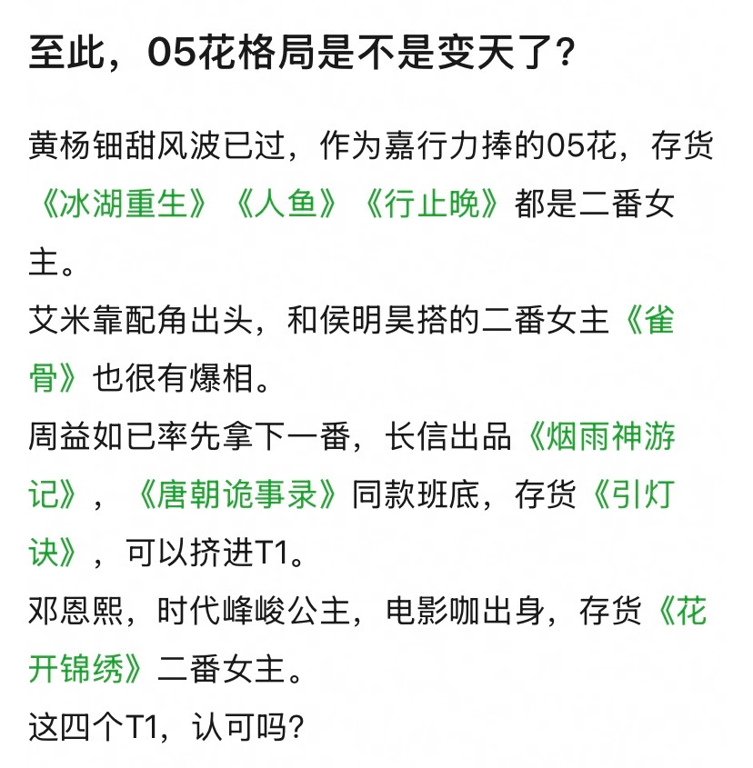 四大05花:黄杨钿甜、艾米、邓恩熙、周益如,但是我印象中邓恩熙不长这样啊。