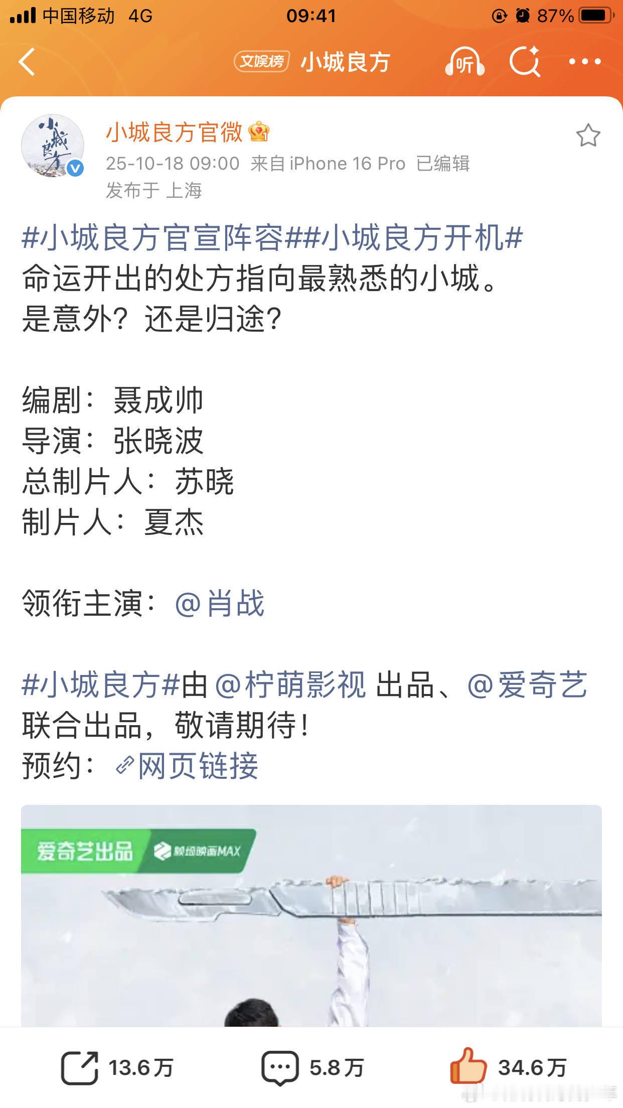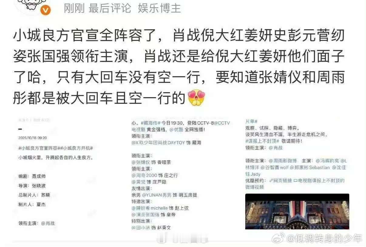 不仅大回车还单开一页 爱奇艺 柠檬 剧方官微都是首先官宣肖战单人博,之后再发的所有演员博 ~以后还会更多[嘻嘻] 再忍忍~再忍忍