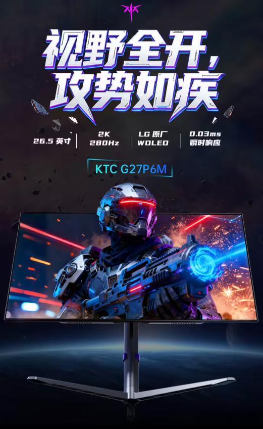 KTC推出全新26.5英寸显示器,主打2K280HzOLED,大家猜