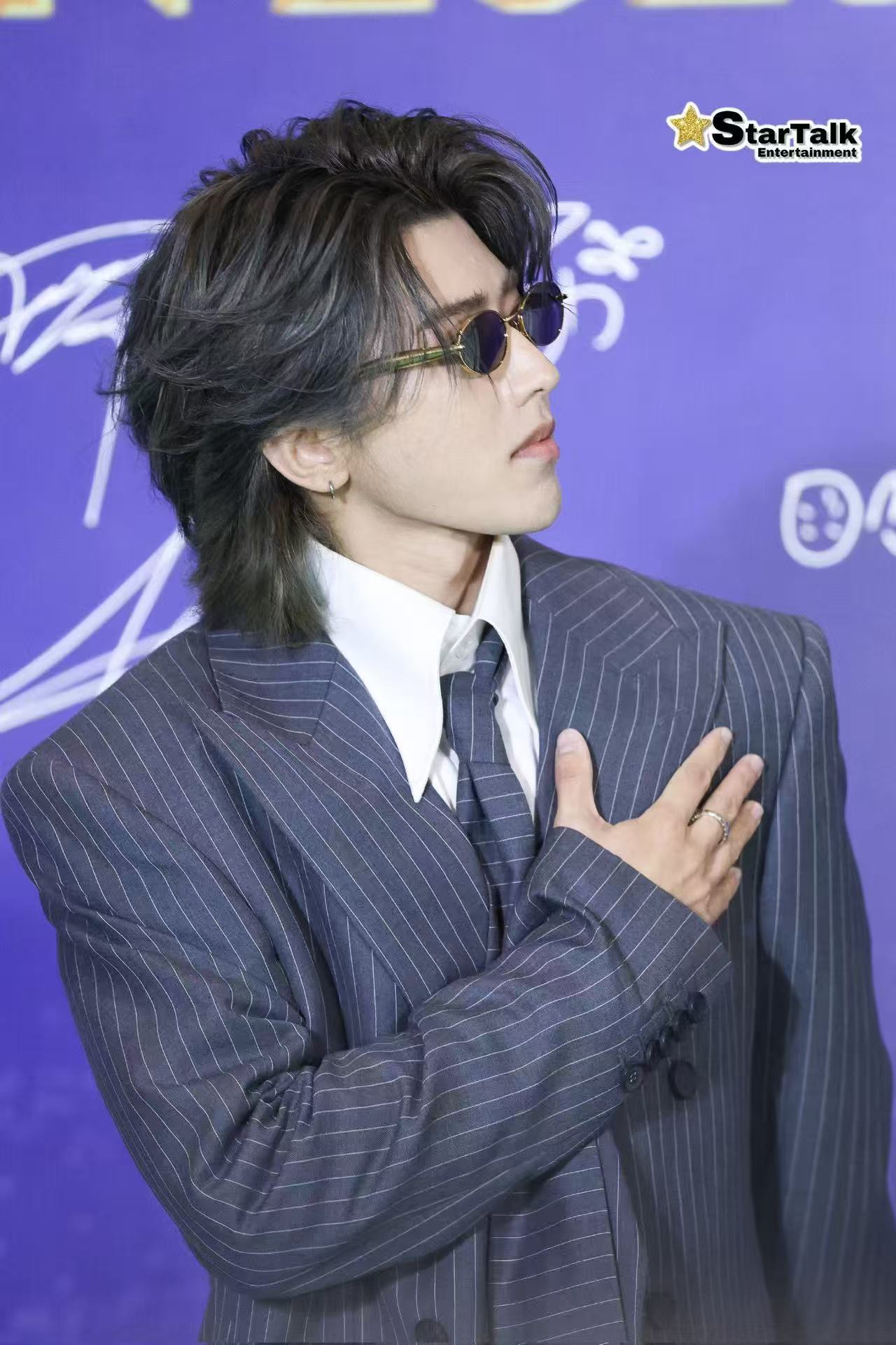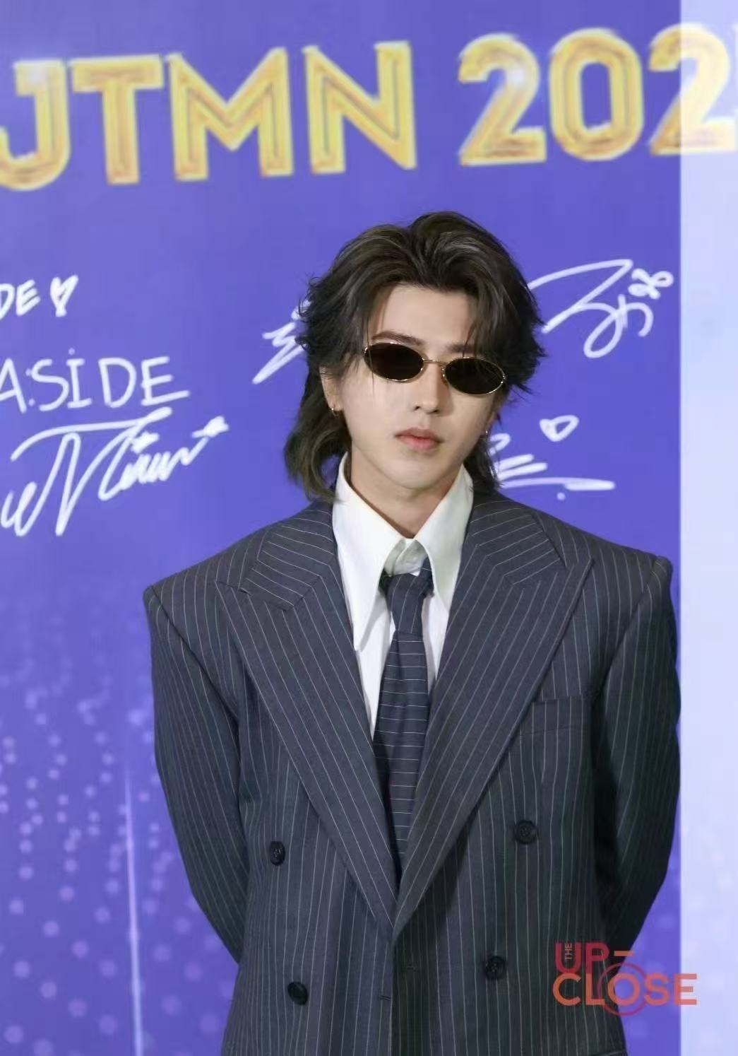 蔡徐坤这里是红毯不是秀场条纹西装衬得身形挺拔,他的红毯步伐堪比高定秀。飞吻瞬间