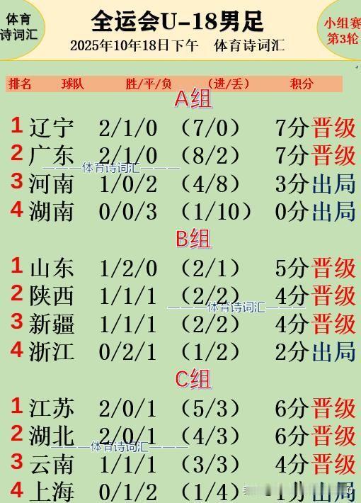 [玫瑰][玫瑰]第十五届全运会U18男足三轮小组赛战罢(战果见截图一),获各小组