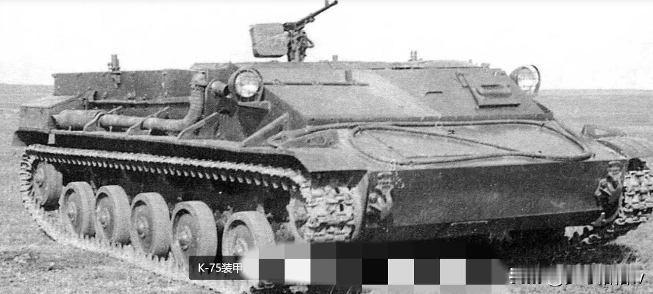 第二次世界大战结束2年以后的1947年,苏联军事工业曾经在T-70轻型坦克(图1的基础之上开发出来了K-75(图2)和K-78(图3)两款装甲运兵车。 简单的说,K-75和K78的区别不明显,仅仅由于后者能够搭载较多的士兵而尺寸略大,且拥有浮渡能力。