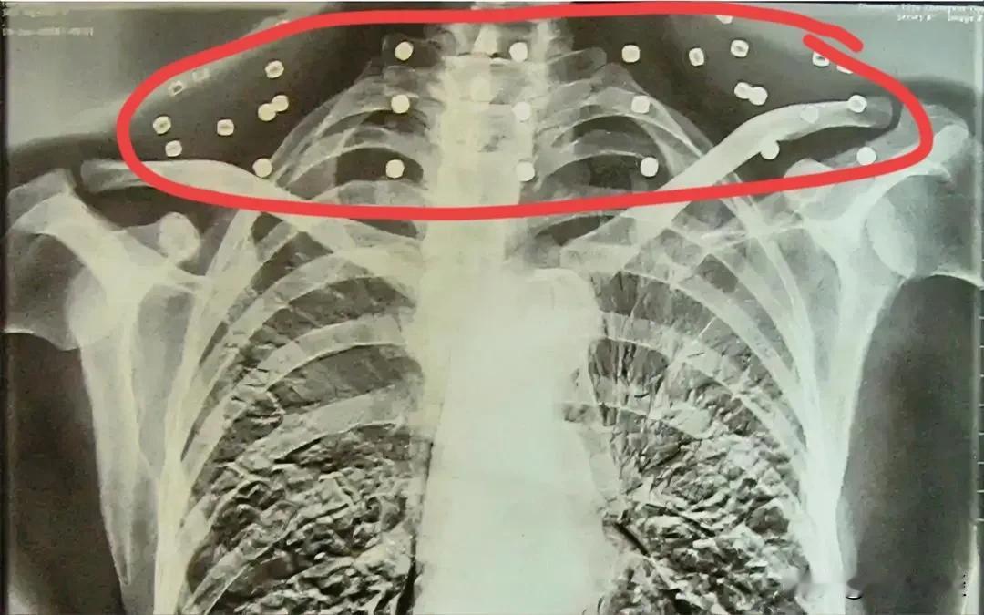 看完泪奔!特殊的“项链”,永远的勋章! 大家看了没,一老人去做检查,被医生提醒要取下项链才能拍片,可老人说“我从来没有戴过项链”,天啊,是弹片,是敌人的弹片,一“戴”就是几十年,可想而知,这老人忍受过无法想象的剧痛,或许长期忍受着痛已经痛到感觉不到体内有异物的存在了…敬佩! 特殊的“项链”,致敬英雄!