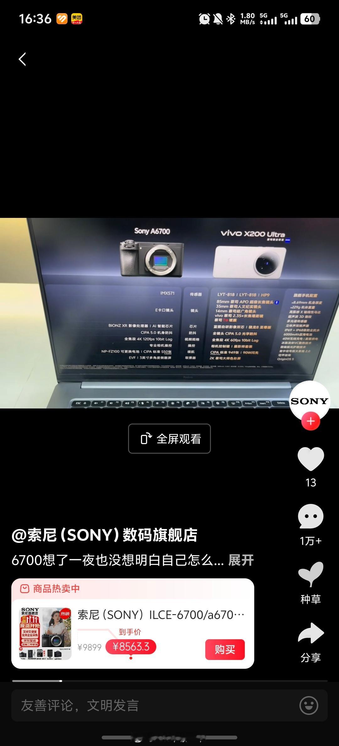 早鸭,vivoX200Ultra确实出圈了吧,连索尼数码旗舰店自己的视频都直