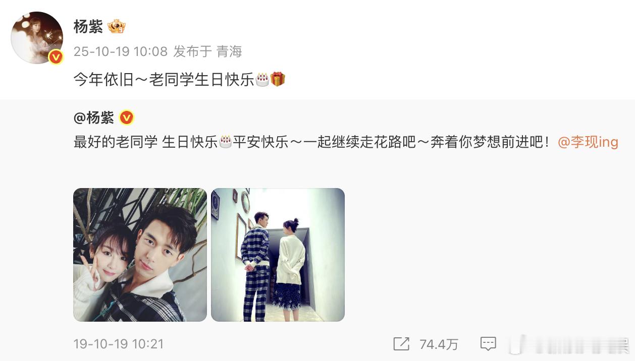 杨紫连续七年祝李现生日快乐真好!