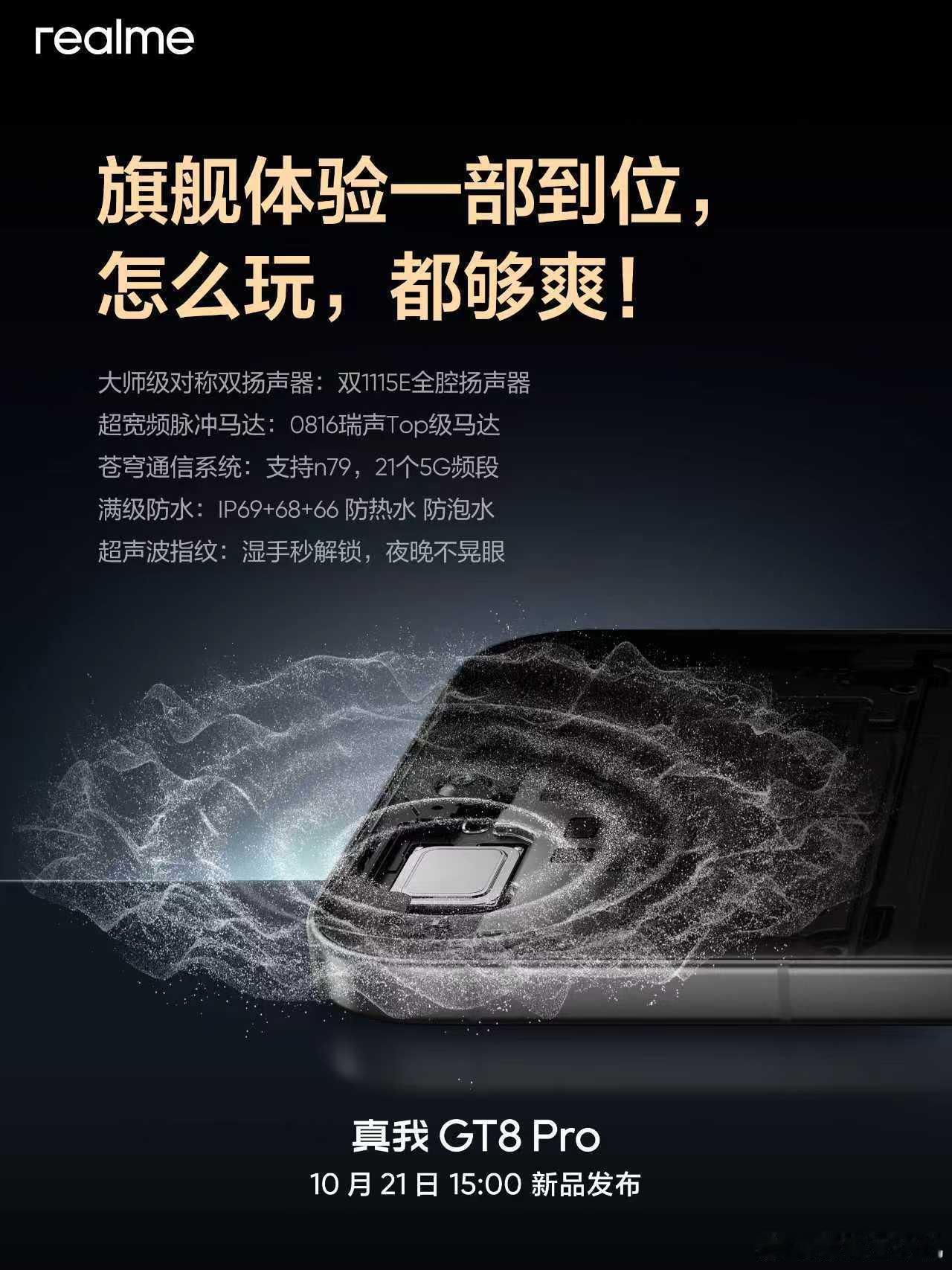 还有0816 ESA超宽频脉冲马达,苍穹通信系统支持n79,提供21个5G频段,并提供超声波指纹、IP69+IP68+IP66满级防水等全能旗舰体验。