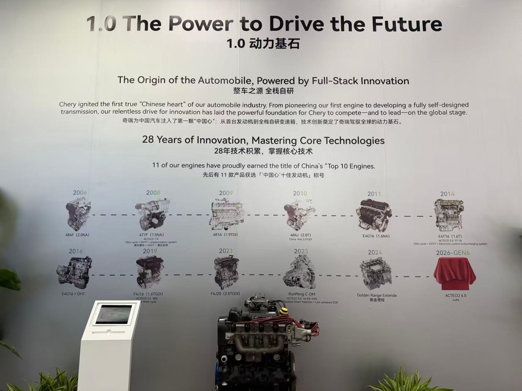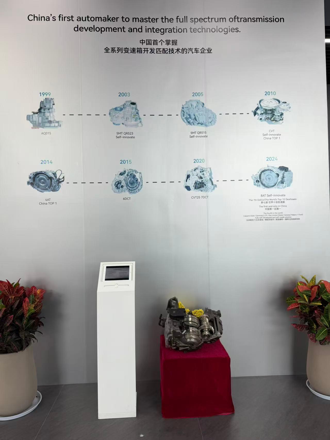 中国人必须要把核心技术牢牢把握在自己手里。中国首台全栈自研的发动机,中国首台全栈自研的汽车变速箱均由奇瑞制造。于1999年下线的、奇瑞第一台量产车风云(仿大众捷达)陈列于奇瑞国际园区一楼展厅2025奇瑞全球创新大会