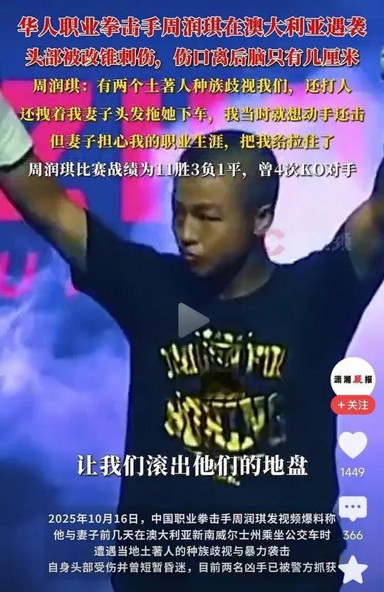 在自己的国家被自己人打了,怎么好意思跑到中文社交平台上来哭诉?难道不是自己打回去吗? 已经移民澳大利亚的华人周润琪,是一名职业金腰带拳击手。他与妻子被两个小白皮狂殴不敢还手,差点没被当街打死。 对此他的解释是害怕自己的职业生涯受到影响,因此没有还手! 你还手并不是让你把他们给打死,作为职业拳击手,你只需点到为止就够他们两人受了。难道将他们打跑的胆量你都没有吗?或者说你都办不到吗? 说白了,就是自己没有种!没有血性!骨子里对白皮有本能的害怕和敬畏! 事后,竟然还有脸到中文社交平台来哭诉、来卖惨。对不起,没有谁会同情一个澳大利亚人。 再说了,你被白皮打了,那是你们自己内部的事情,就算想帮,我们也帮不上这个忙。 既然你都腆着脸到来哭诉了,好歹安慰你几句吧:本来可以从从容容游刃有余,现在却从从容容连滚带爬!面对两个白皮就怂了,你哭什么哭?没出息!