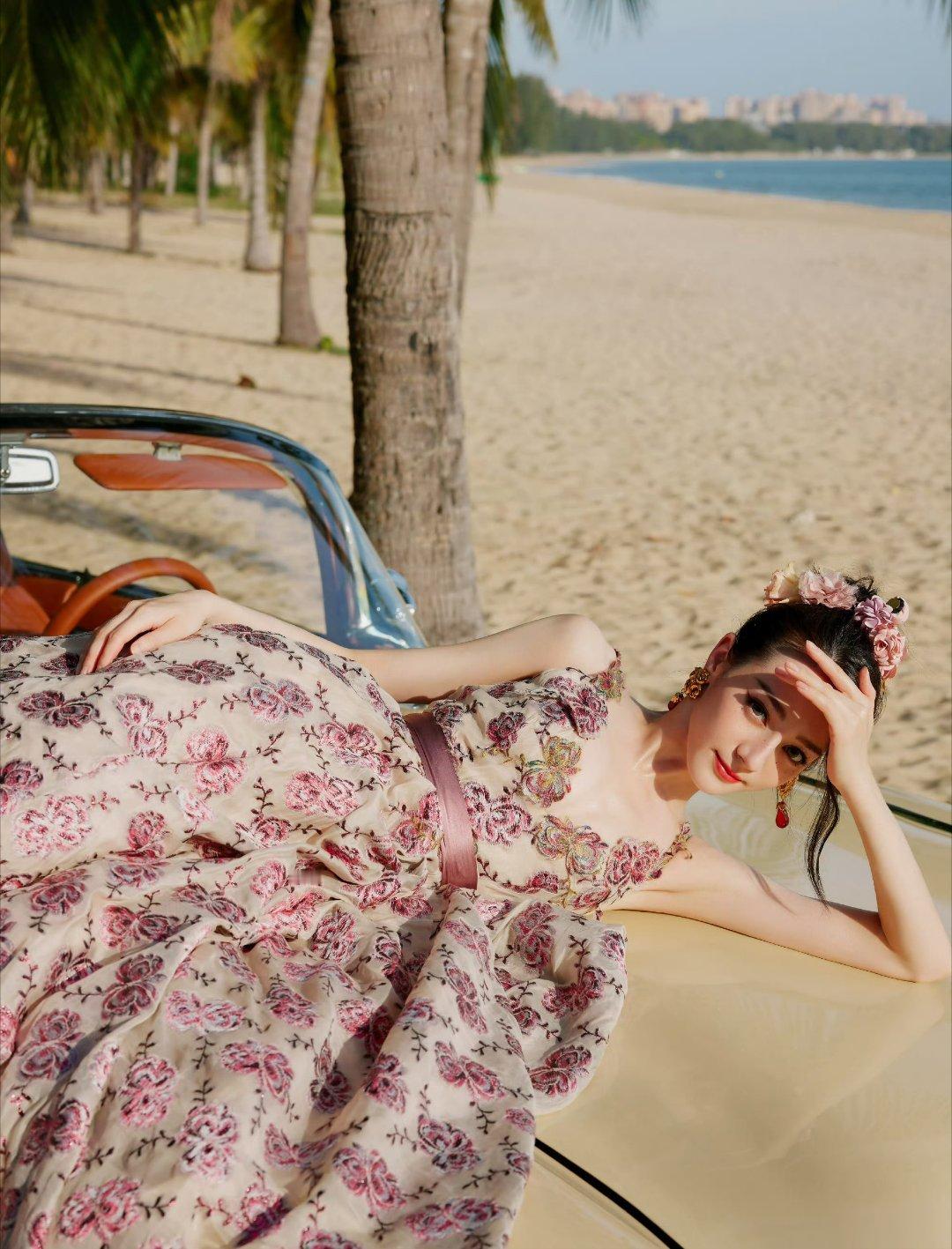 阳光,沙滩,还有花仙子🧚🏻♀️。谁当年没被迪丽热巴这组海滩图美到过?