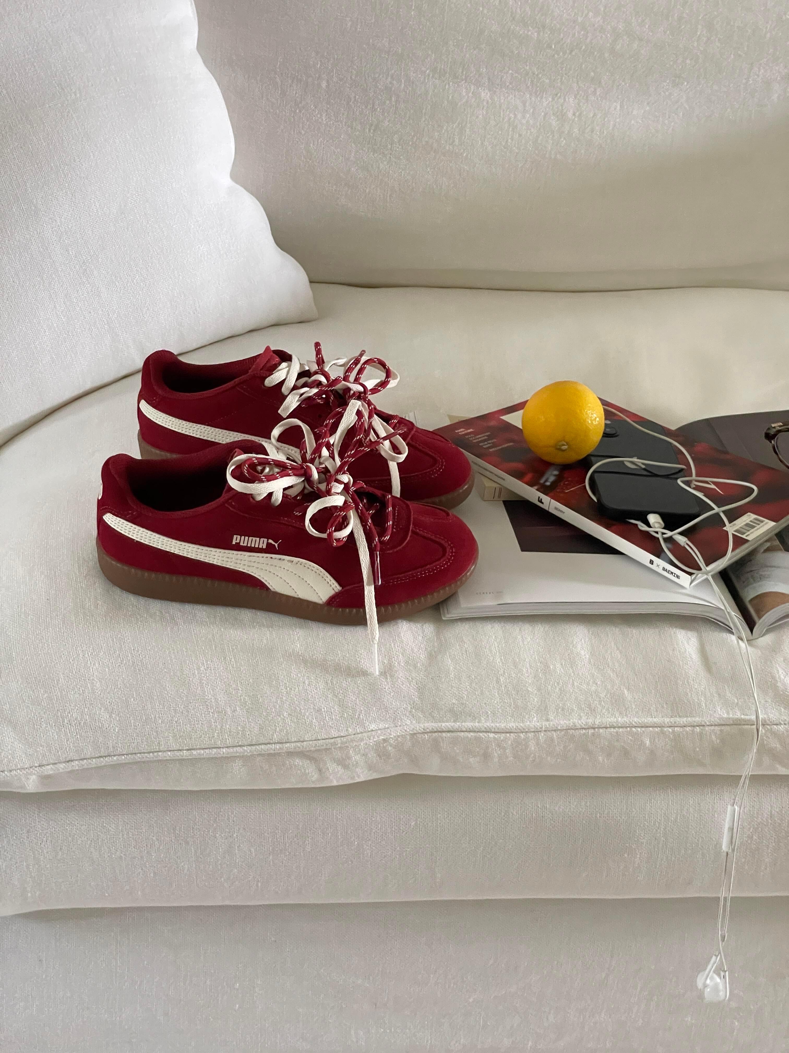 时尚鞋履年度本命小红鞋锁定!这双复古暗红德训鞋直接戳中时尚心巴~低饱和暗红调自