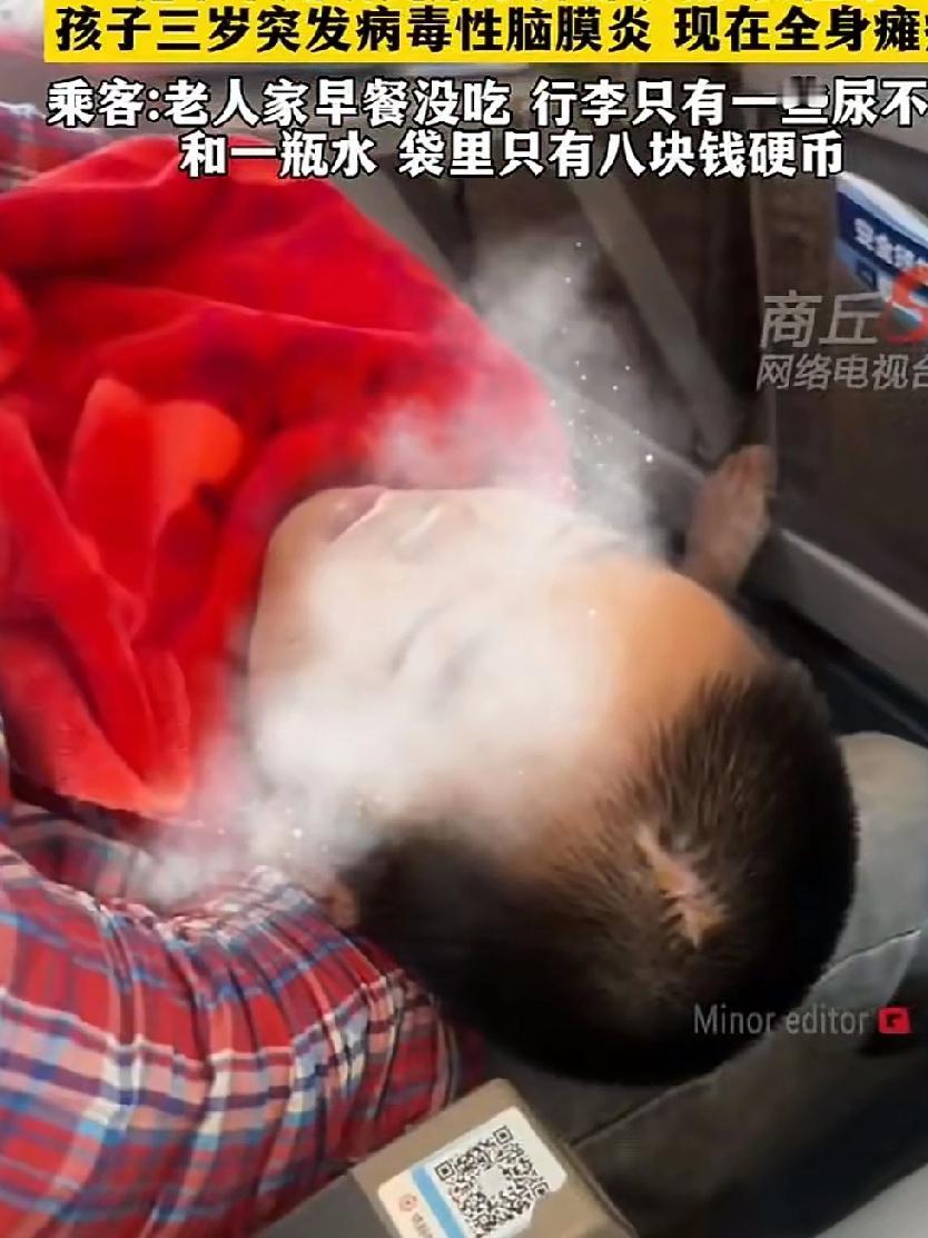 75岁的老人独自带着的孙子求医无果,乘坐高铁抱憾而归! 老人太难了,拖着一个带病的孩子,孩子三岁时因突发病毒性脑膜炎,导致如今不能自理,吃喝拉撒需要老人照顾,儿子被判入狱儿媳改嫁,老伴也已去世别说治病,吃饭都成问题,老人和孙子相依为命的日子不知怎么过下去,太难了,最好的办法可以向当地政府求助,至少能解决温饱,让老人和孩子感觉到人间的温暖!